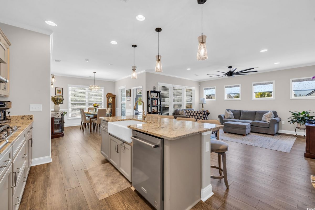 Welcome to 7154 Sarteano Dr., a stunning 4-bedroom, 3-bathroom home in the highly sought-after Del Webb at Grande Dunes, Myrtle Beach’s premier 55+ community. This 2022-built residence offers 2,724 heated square feet of sophisticated living, featuring an open-concept design, soaring ceilings, and abundant natural light. The gourmet kitchen is a chef’s dream, boasting premium stainless steel appliances, an oversized island, granite countertops, custom cabinetry, and a spacious walk-in pantry perfect for both entertaining and everyday living. The luxurious primary suite serves as a serene retreat, complete with a spa-inspired en-suite bath, dual vanities, a walk-in shower, and an expansive walk-in closet. Two additional bedrooms on the first floor offer comfort and convenience, each with access to a full bath. Upstairs, the fourth bedroom is accompanied by a full bath and a spacious media area, ideal for guests or multi-purpose use. Step outside to your enclosed Carolina room with a covered pergola, where you can unwind and soak in the coastal breeze. The beautifully landscaped 0.18-acre lot provides privacy and relaxation, while the attached two-car garage with a four-car capacity ensures ample parking and storage. Residents of Del Webb at Grande Dunes enjoy exclusive access to a private clubhouse, fitness center, indoor and outdoor pools, tennis and pickleball courts, and a vibrant social calendar. As part of the esteemed Grande Dunes community, homeowners also gain membership to the Grande Dunes Ocean Club, a luxurious oceanfront retreat with fine dining, beachfront pools, and elegant event spaces. The Grande Dunes lifestyle extends across 2,200 acres, featuring two world-class 18-hole golf courses the Resort Course, open to the public, and the private Nick Price-designed Members Club. Additional community amenities include a 126-slip deep-water marina accommodating vessels over 120 feet and a state-of-the-art Har-Tru tennis facility. Ideally situated near shopping, fine dining, and just a mile from Grand Strand Medical Center, this home offers the ultimate coastal luxury lifestyle. Experience Grande Dunes living where elegance, convenience, and world-class amenities come together. Contact the listing agent today for more details or to schedule your private tour!