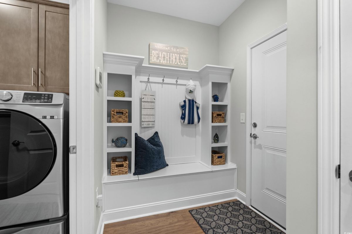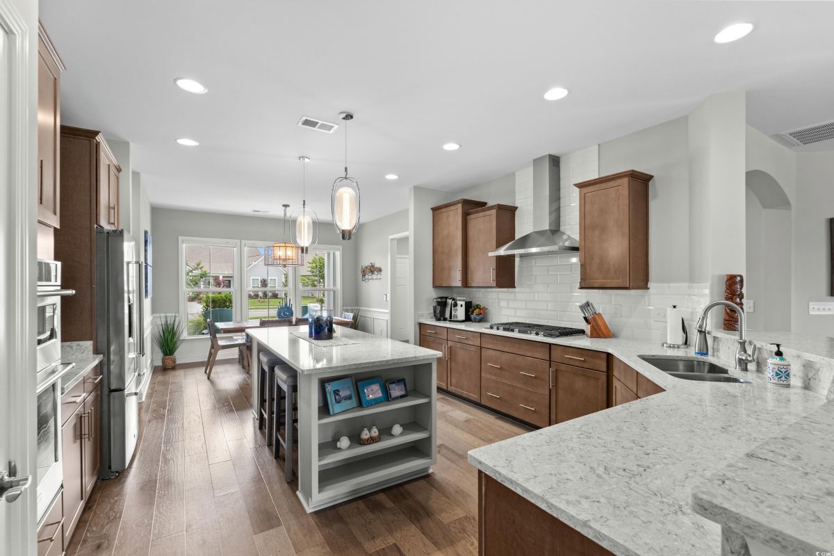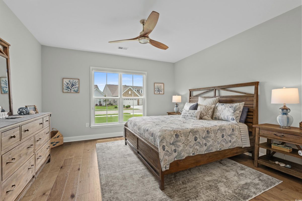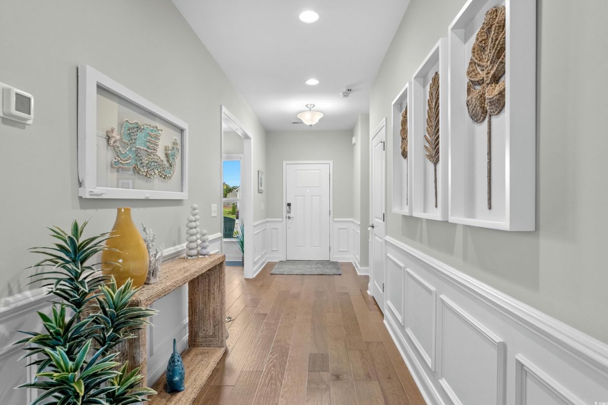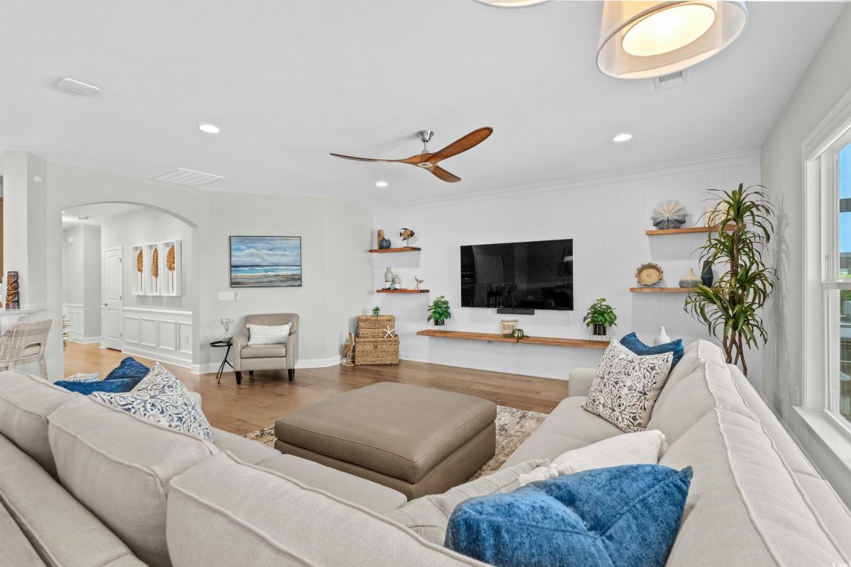 Experience waterway living at its finest at 7374 Sarteano Dr, a refined Grande Dunes residence where sophistication meets serenity. Nestled in the prestigious Del Webb neighborhood and situated on one of the premier ICW homesites, this one of a kind, immaculate 3 Bedroom, 3 bath home offers unmatched sunset views down the waterway and amazing golf views of the signature hole on the resort course. Upon entering this open plan, you'll immediately notice the custom upgrades and details that resonate throughout this exquisite residence. Natural light pours through the homes many windows, and added sunroom, perfect for watching the boats cruise by or golfers tee up on the green. The great room and owners suite come alive with custom shiplap accent walls, custom Cypress floating shelves in great room and a unique barn door in the primary. So many improvements in this place, including wood flooring throughout, full pull out cabinets, top of the line appliances, a custom vanity in the owners bath, and automated blinds for your convenience. Indulge in the craftsmanship of designer lighting & ceiling fans, the durability of a coated garage floor, security cameras, as well as whole house and A/C surge protectors...the list of enhancements is endless. Outside, enjoy your slice of paradise with an expansive stone patio featuring a custom gas fire pit, a grilling area, and plenty of room to chill, just an ideal combination for entertaining the family or serene evenings under the stars. Residents of this amenity-rich neighborhood enjoy a vibrant lifestyle with access to community features that cater to the 55+ market, ensuring that there’s always something to do and new friends to meet. Del Webb, a natural gas community, offers an indoor heated pool, an outdoor resort style pool, a fulltime activities director, pickleball and tennis courts, bocce ball court, a fitness center, a fire pit, walking trails and day docks for fishing or boating. Your lawn care is also included so you can spend your time savoring life. As an owner in Grande Dunes you have access to the 25,000 square foot Ocean Club where you can enjoy fine dining, happy hour outings, oceanfront pools with food and beverage service, private beach entrance, beach chair service, and other fun activities. Additionally, the community has two 18-hole golf courses, deep water marina, and a Har-tru tennis facility.