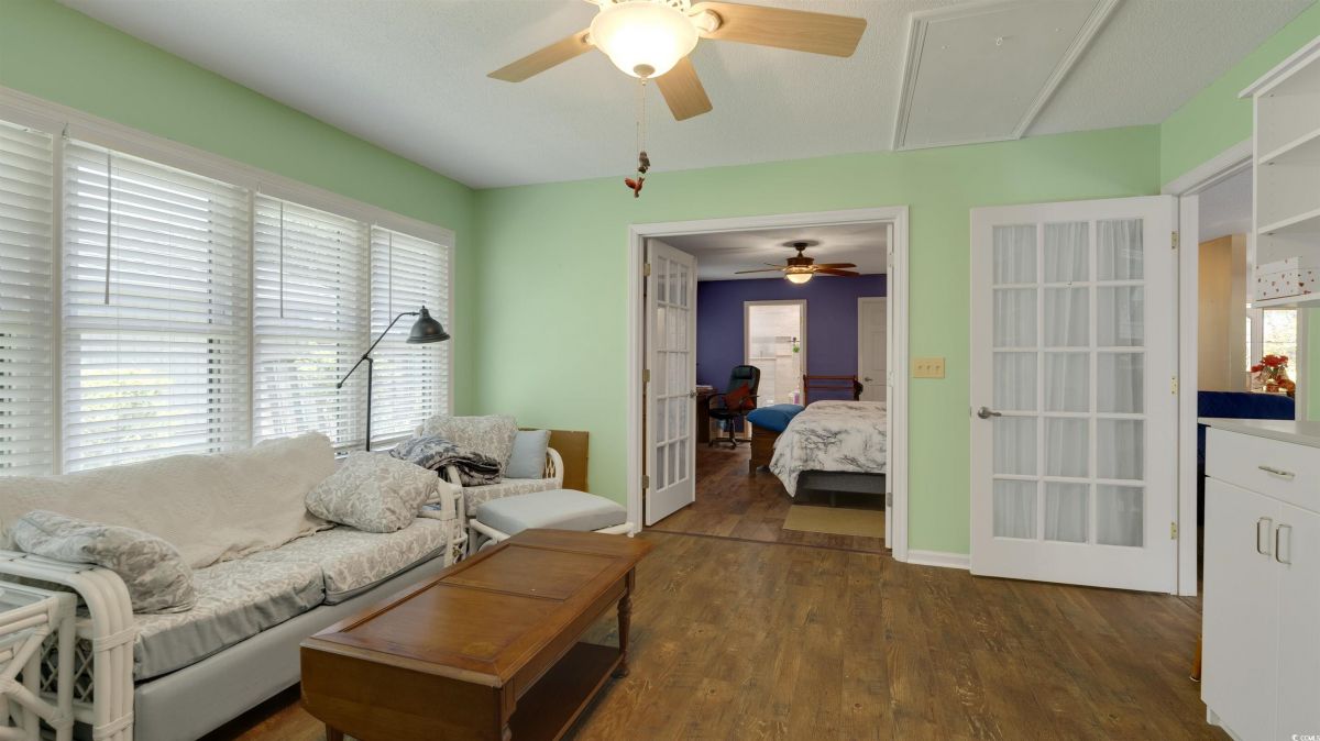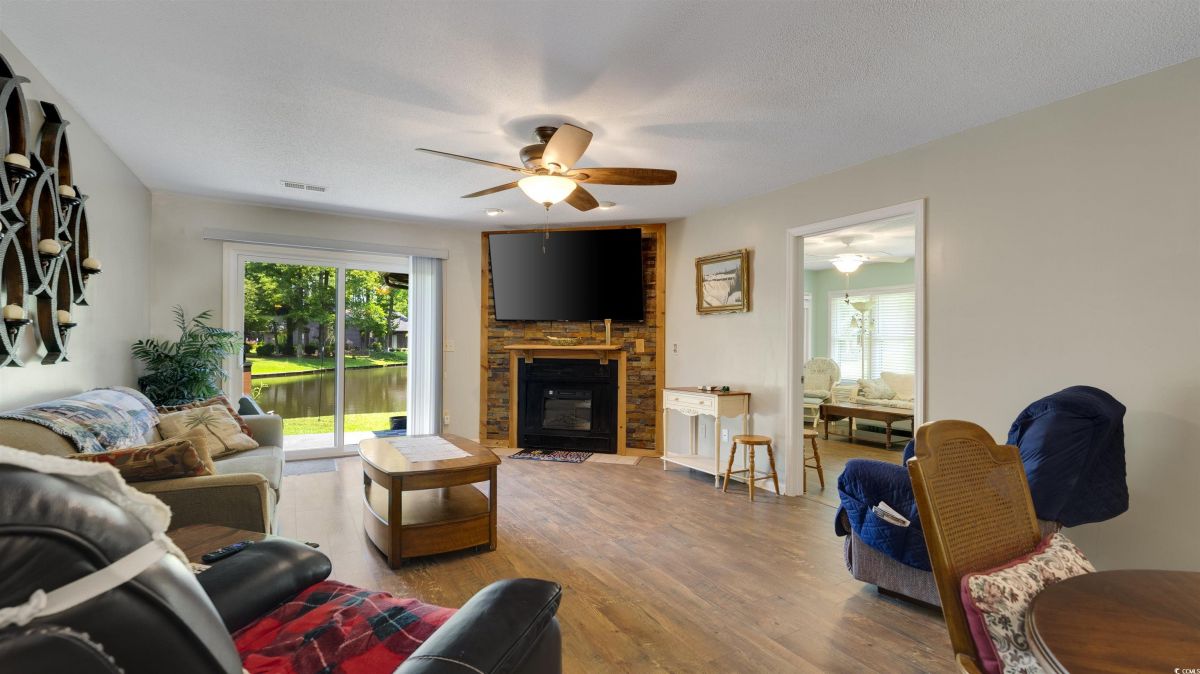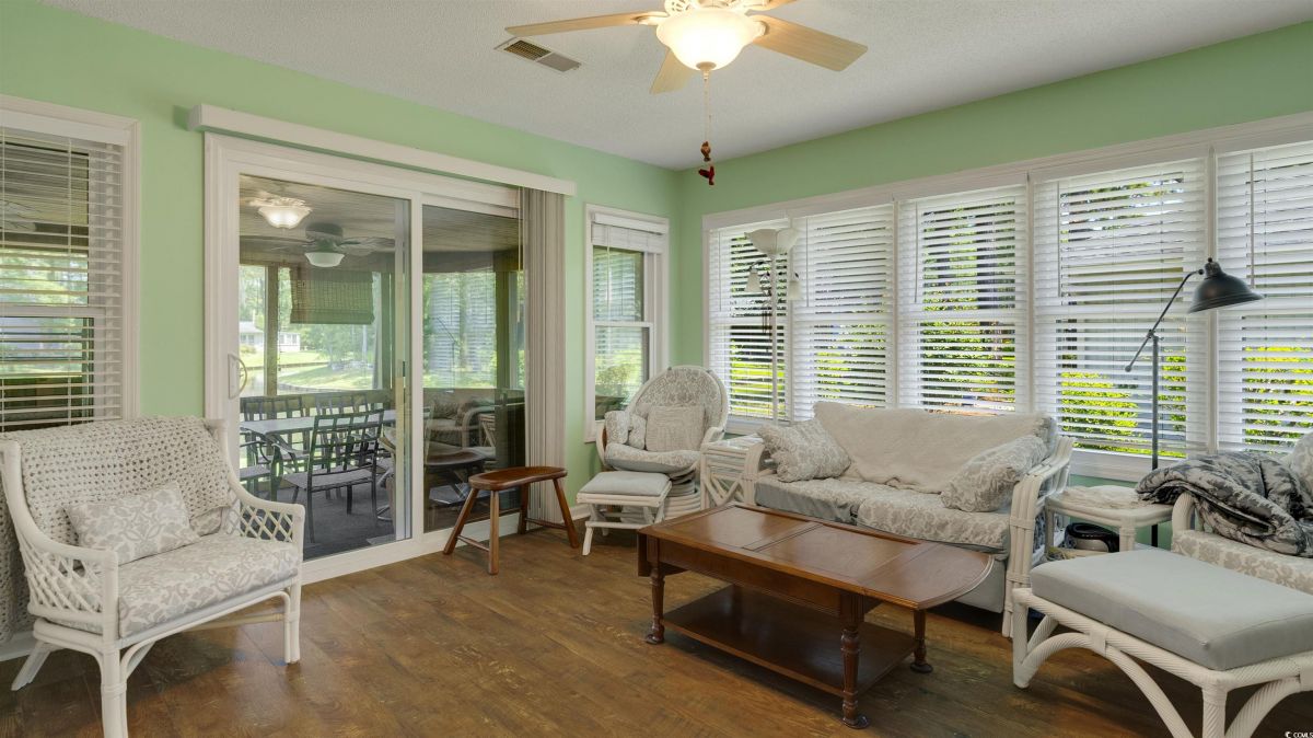 Myrtle Trace 2 BR/2 BA Patio home on large pond with views . Updated and move in ready! Carolina room leading to a screened room on back deck overlooking a pond. Beautifully landscaped lot. Attached 1-car garage. Walk to Community clubhouse and pool. Active 55+ community with trees, shade and greenery. Near a hospital, numerous doctors, shopping, restaurants and golf courses. 12 miles to the ocean. Come live in the Sun .