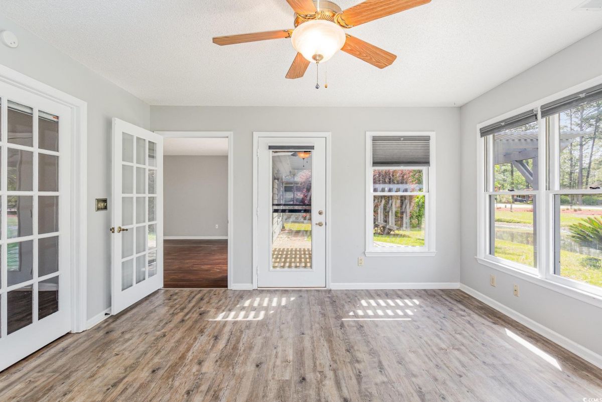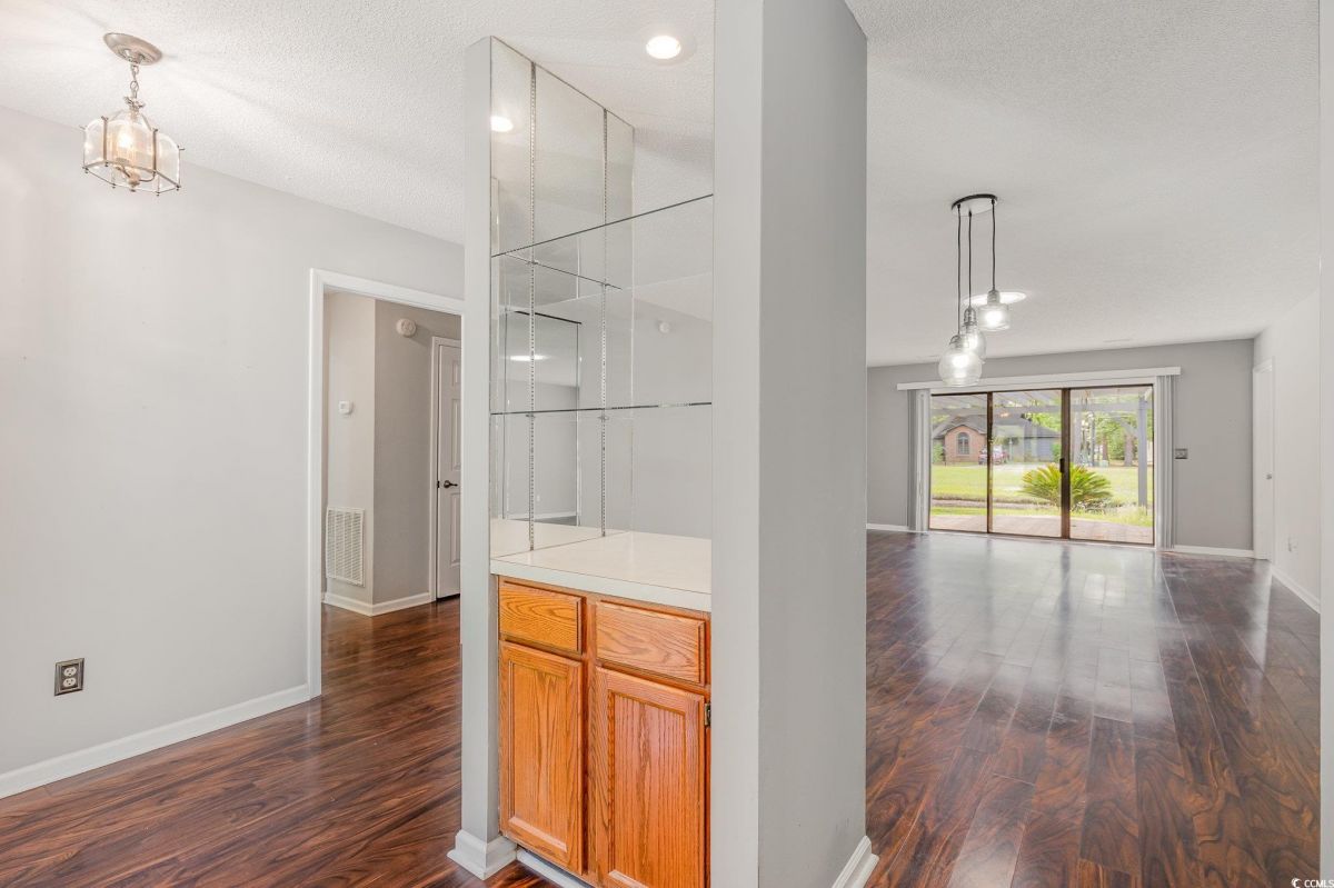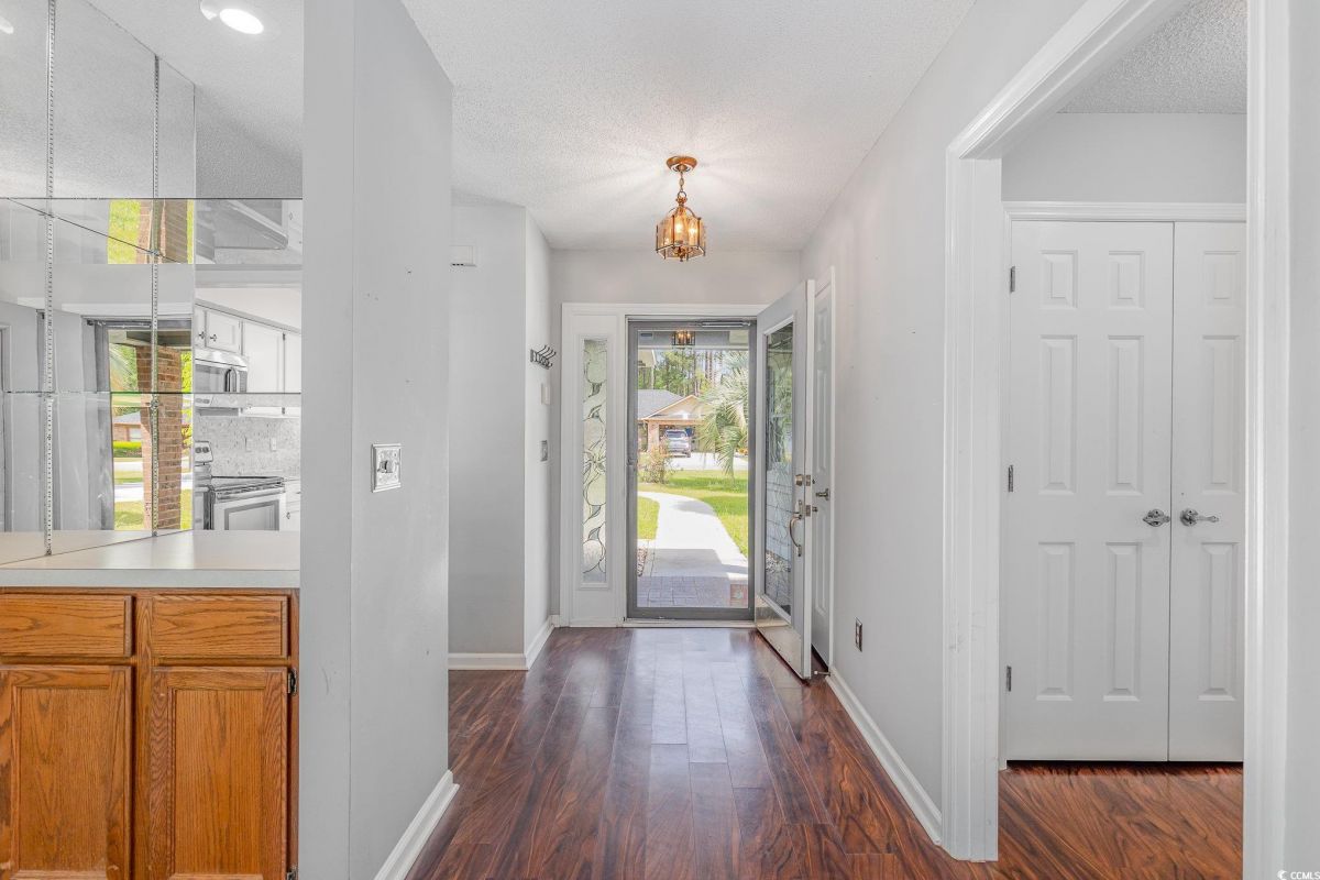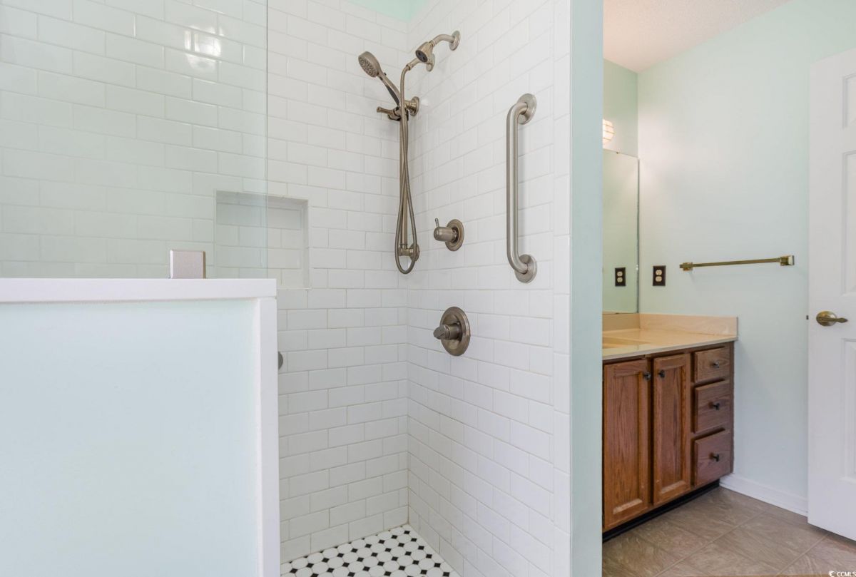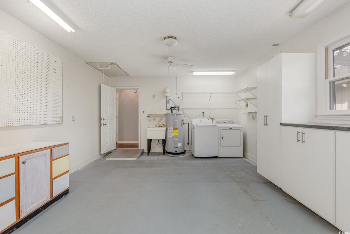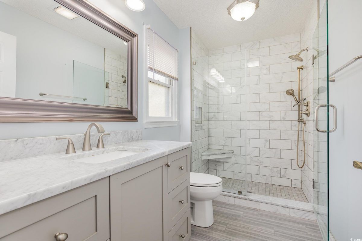 This beautiful home offers the perfect blend of comfort, style, and active living. Nestled in one of the area's most sought-after 55+ communities, Myrtle Trace. You'll enjoy incredible amenities including a sparkling community pool, basketball hoop, shuffleboard courts, and more. Step inside to find a spacious, open-concept layout with large living areas perfect for entertaining or relaxing. The updated kitchen features elegant granite countertops, newer stainless steel appliances, and ample cabinet space. This home features a large living room, sunroom, and split floorplan. The master suite is a large, open room with access to the sunroom. The master bathroom has been tastefully refinished, providing a spa-like retreat. The new counters and tiled shower complement the new flooring. Solid flooring flows throughout the home, adding warmth and durability. Enjoy your morning coffee or unwind in the evenings on the large covered porch with a charming pergola—offering peaceful views of the pond just beyond your backyard. The garage features a slop sink, cabinetry and shelving, finished floor, and a newer washer and dryer. This home has many positive features but will need some painting in the guest bedroom and a water leak repaired. Please reach out to your agent for details. This is an affordable opportunity to be in Myrtle Trace!