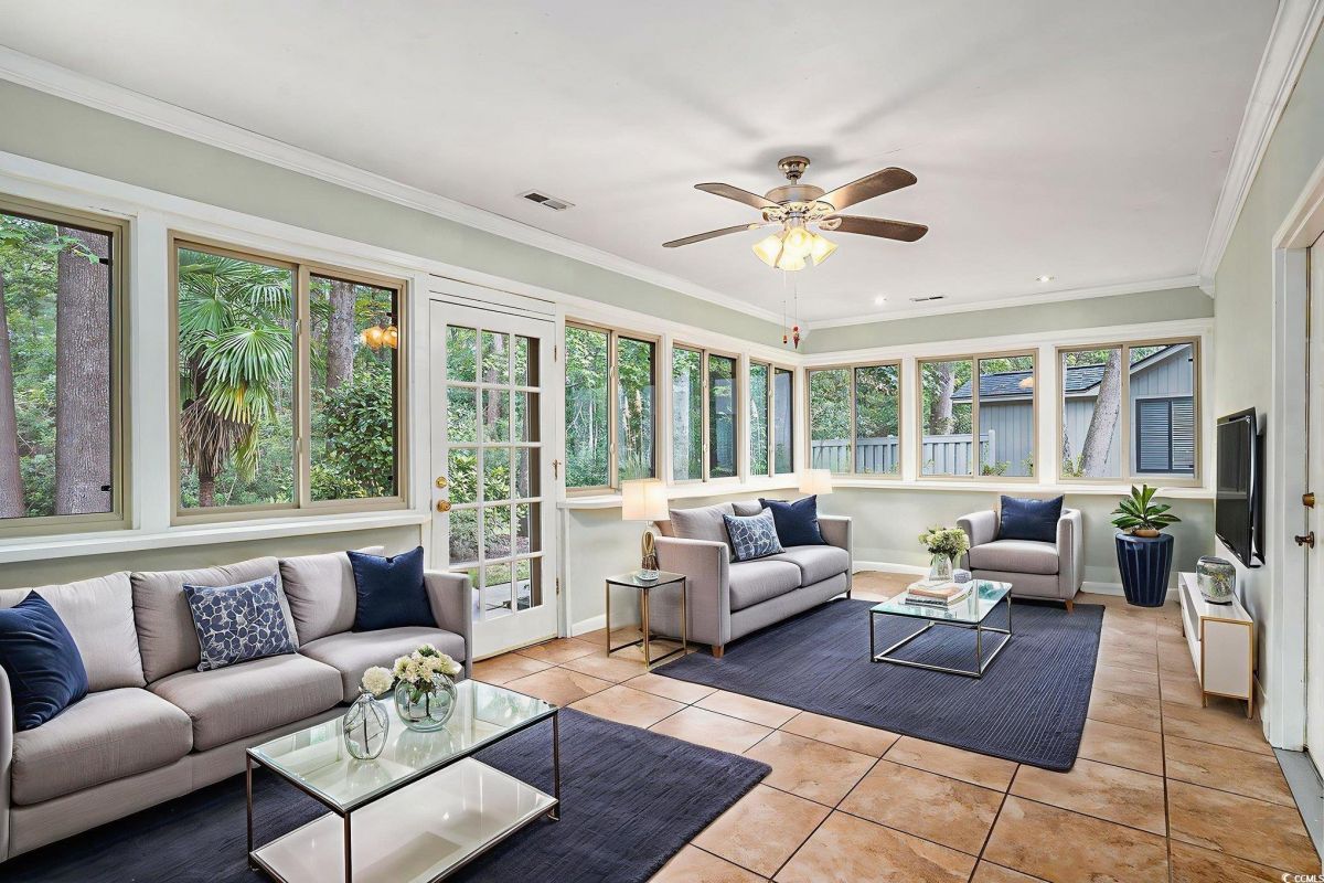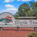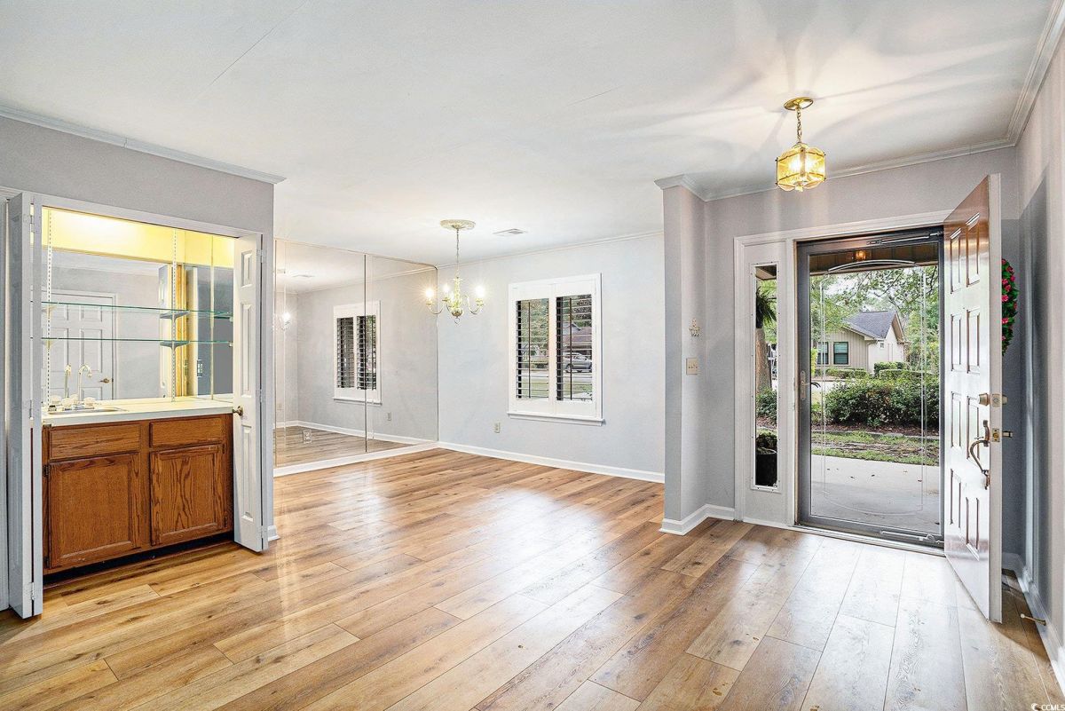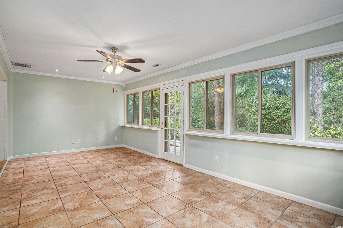 Nestled on a spacious double lot in the popular 55+ Myrtle Trace community, this lovely 3 bed 2 bath home has been updated with a new roof in August 2025, freshly painted kitchen and bathrooms in September 2025, microwave in 2024, gutter guards in 2023, new refrigerator and dishwasher in 2022 and new HVAC in 2020! Framed by lush, established landscaping, this beautiful home boasts smooth ceilings, LVP flooring in the living areas and bedrooms (no carpet!), and a fantastic floor plan perfect for entertaining with an expansive family room with a wood burning fireplace, built in wet bar and direct access to the patio, nice sized dining area and a spectacular kitchen with Corian countertops, stainless appliances, tile backsplash, abundant cabinet space, a pull out spice rack and pull out drawers, a pantry and direct access to the Carolina room. The luxurious master suite features French doors leading to the patio, a large walk-in closet with shelving and bath with vanity and tiled shower with seating and there is an office space just off the bedroom with a built-in desk which is great when working from home. There are two additional bedrooms with ample closet space at the front of the home that share the second bath with vanity and tub/shower and a laundry just off the hall with cabinets. In addition, the home has tile floors in the kitchen, office, baths, and Carolina room, comfort height toilets and Corian counters in the baths, ceiling fans in the bedrooms and Carolina room and a one car garage and extended driveway with plenty of parking space for you and your guests. Relax with your morning coffee or favorite book in the light filled Carolina room with wonderful views of the private backyard and space for everyone to gather. Outside, the patio is the perfect spot for hosting barbecues and you, and your guests will love dining al fresco and sipping cocktails while enjoying serene, wooded views. The amenities are fabulous at Myrtle Trace and include a saltwater pool, clubhouse, bocce court, shuffleboard and community events that include monthly parties, game nights, and holiday celebrations. Great central location close to shopping, restaurants, medical facilities, historic downtown Conway, golf, including the Burning Ridge Golf Course, Tanger Outlets and you are less than 15 minutes from the ocean, and all the attractions and entertainment Myrtle Beach has to offer. Whether you are searching for your forever home or the perfect vacation getaway, this is a must see! Make an appointment today to view this charming home today!