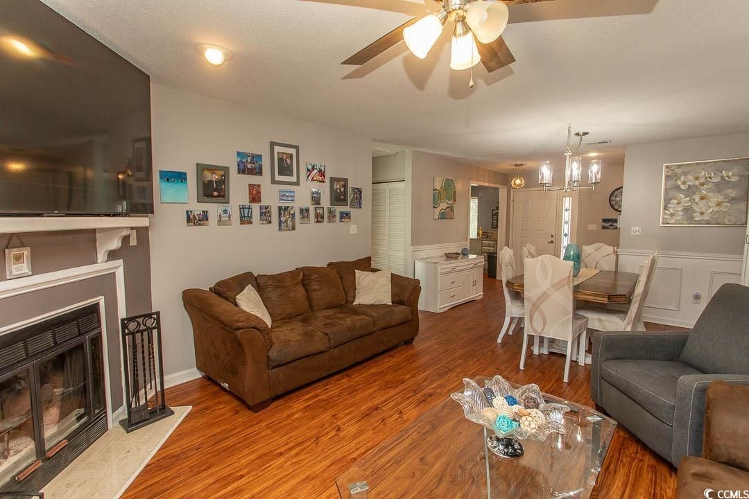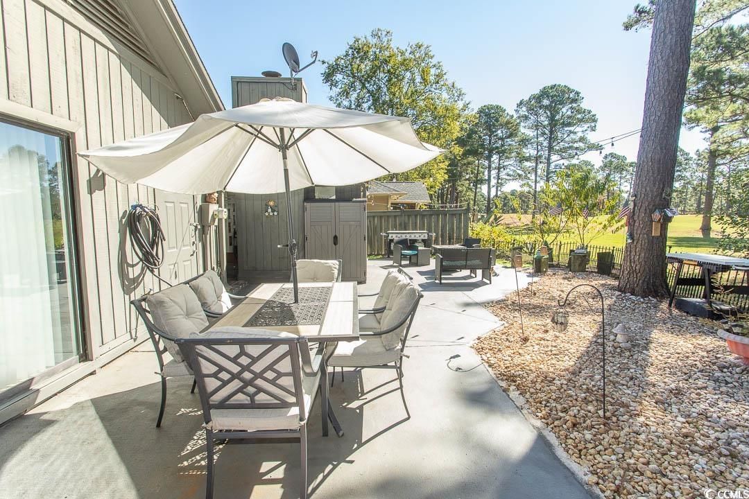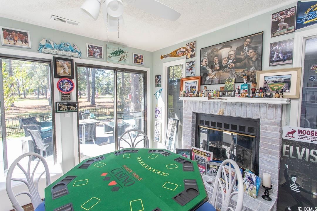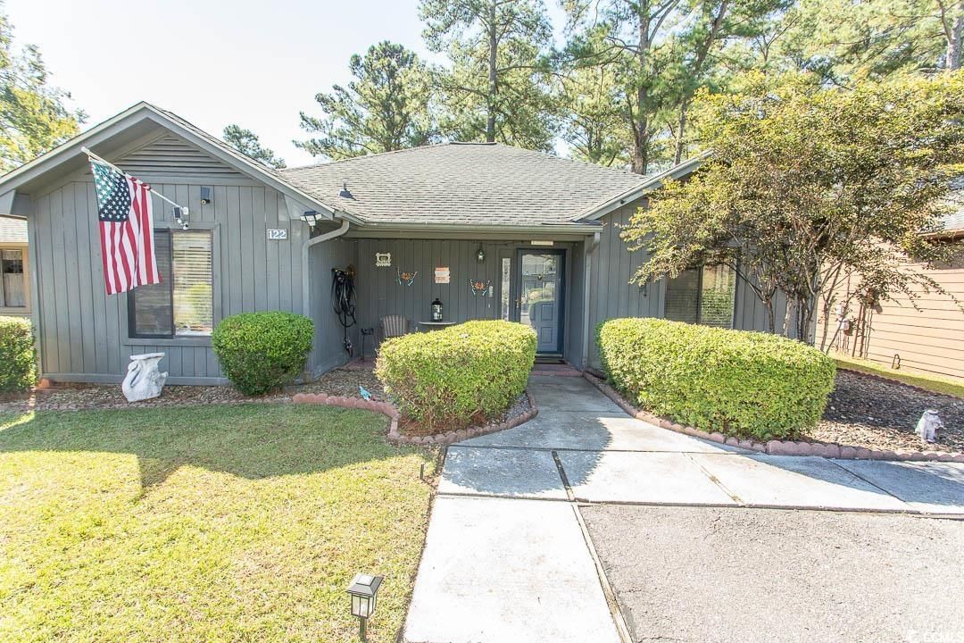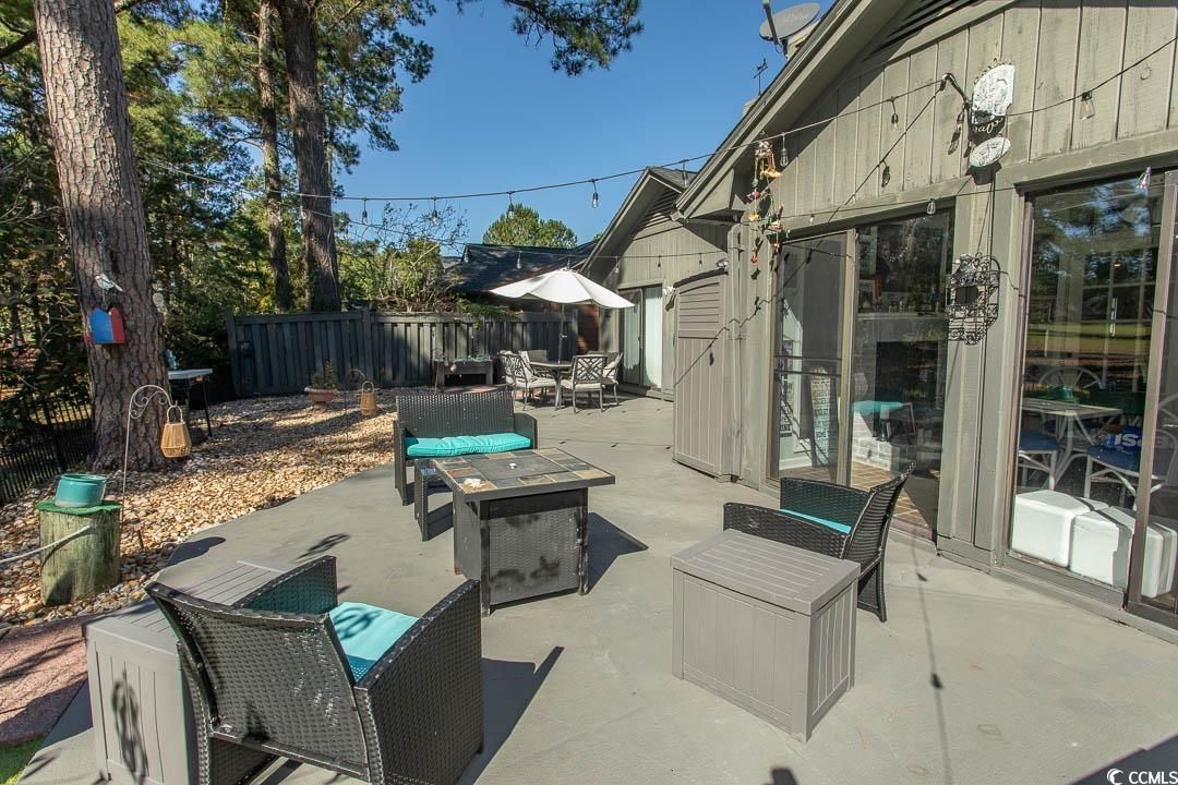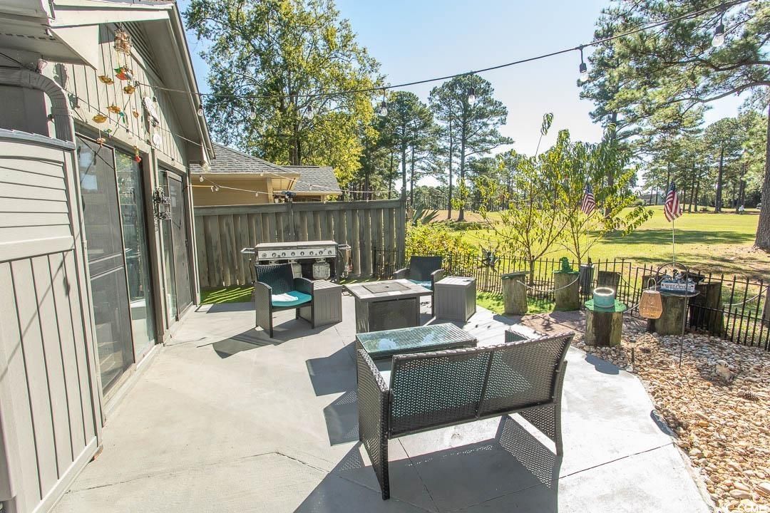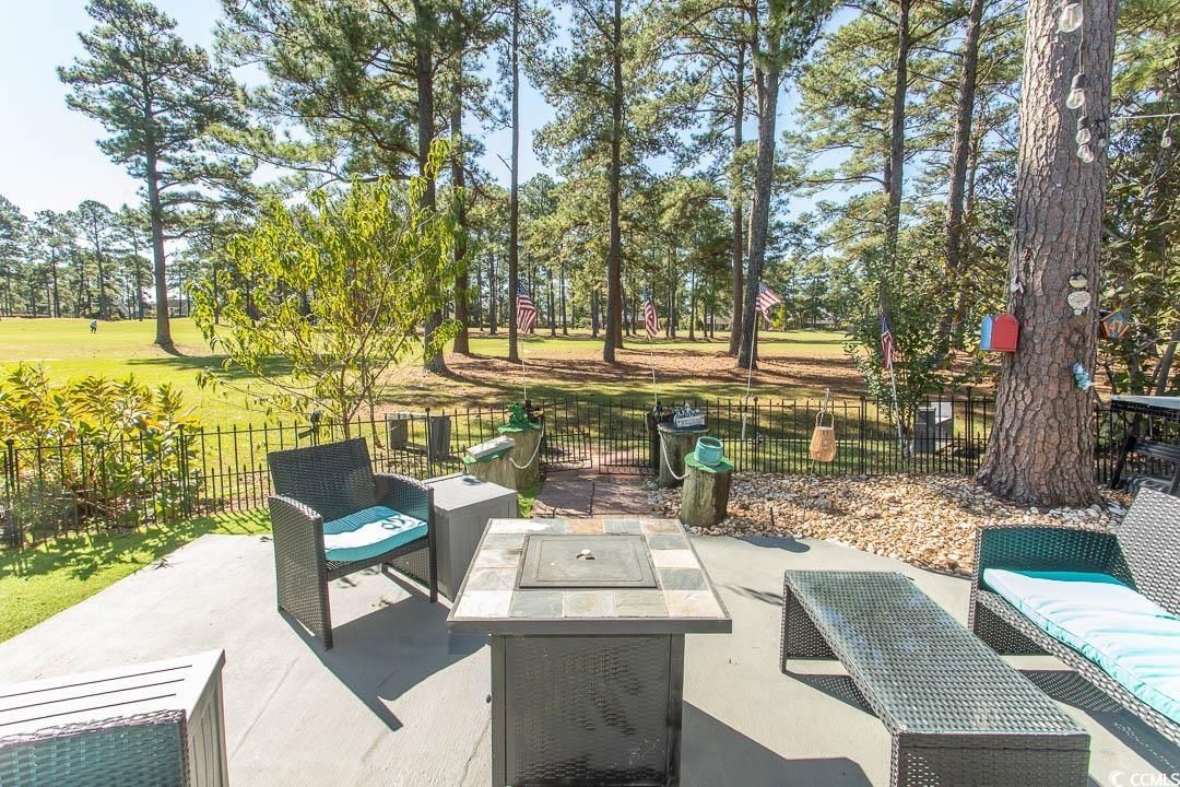 This comfy, cozy and conveniently located cottage-style ranch in sought-after Active 55+ Myrtle Trace is a perfect place to retire and enjoy life "at the beach". Just a few miles from the wonderful attractions, shopping and beaches of the Grand Strand, this inviting community is nestled next to Burning Ridge Golf Course with Aldi's, Walmart, restaurants and Wild Wing Golf Course also very close by. The home itself, has stunning views of the 10th fairway from the large back patio. Inside you will find an updated (2020), expanded kitchen with stainless steel appliances incl a combo range (convection, air fryer and reg bake), a center island and large pantry. The living room has a bonus area that could be turned into a small third bedroom. There are 2 FIREPLACES in the home. One located in the liv rm and one in the unique den or "man-cave" area off the expanded living room area. Separated by a pocket door, the den also has 2 sliders to the rear patio which lets the beautiful view of the golf course in. 2 additional generous bedrooms (the master has 2 walk in closets), 2 updated baths , a new roof (2021) and TONS of storage space inside and out makes this a great place to call home. The amenities at the clubhouse included in the low HOA fee feature an outdoor pool, bocce ball , basketball court, clubs and organized activities and gatherings.