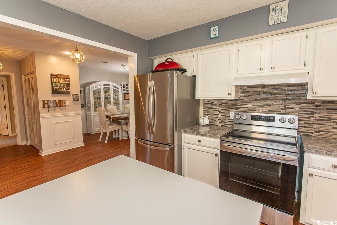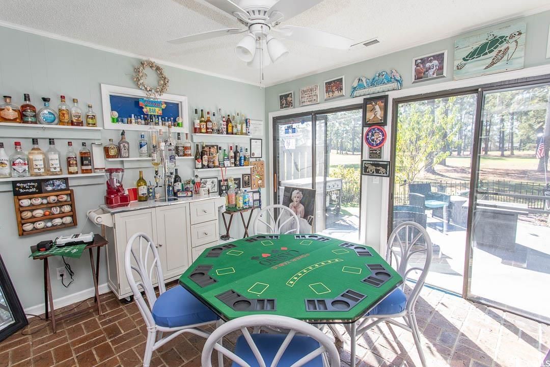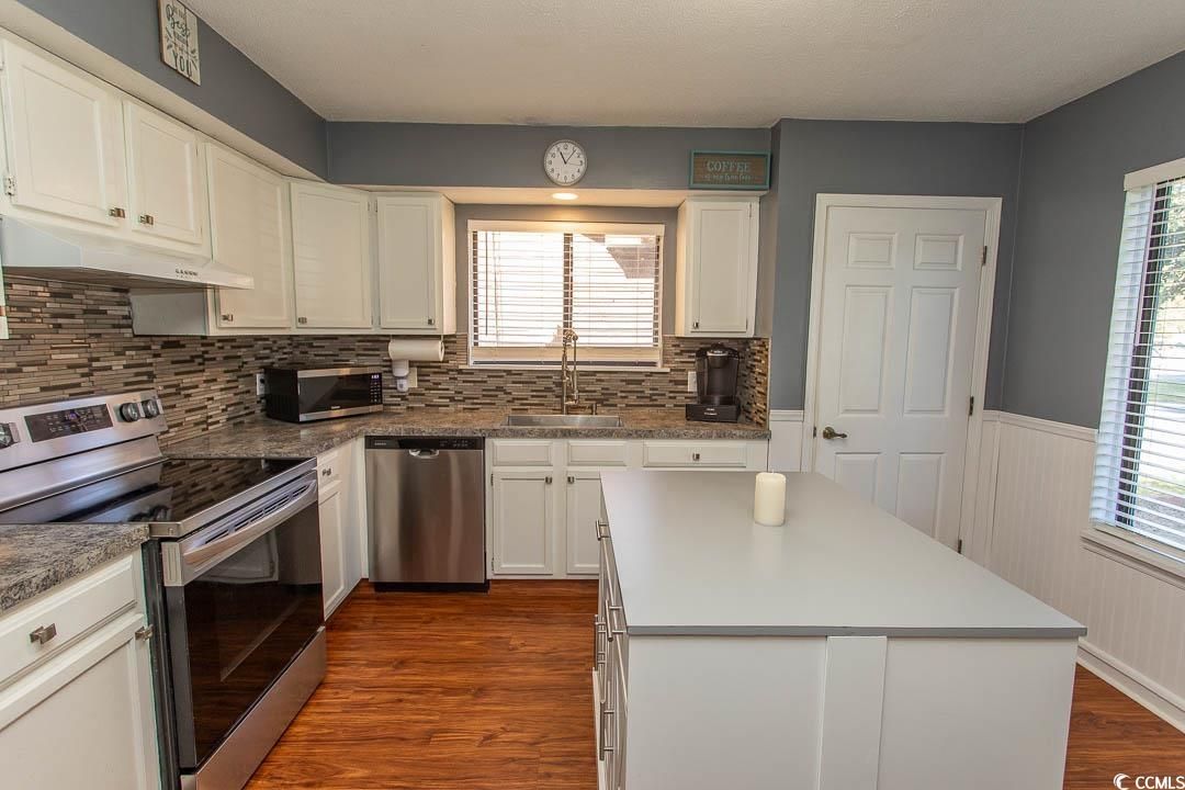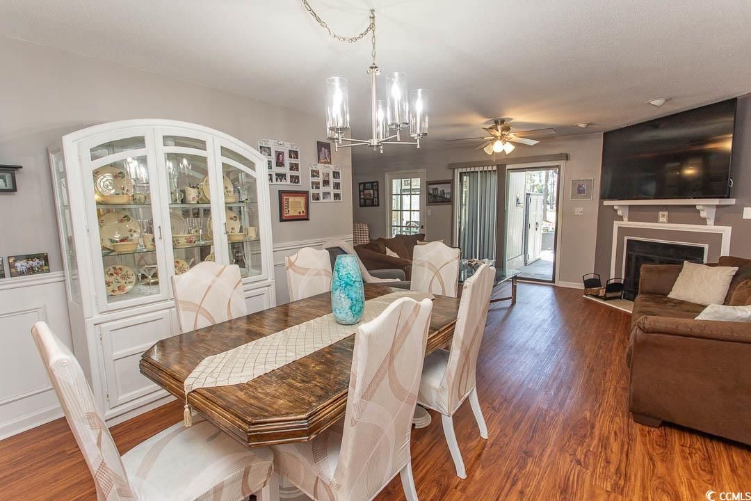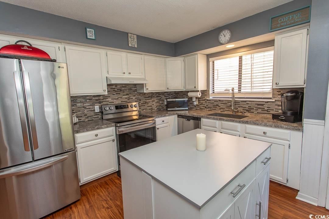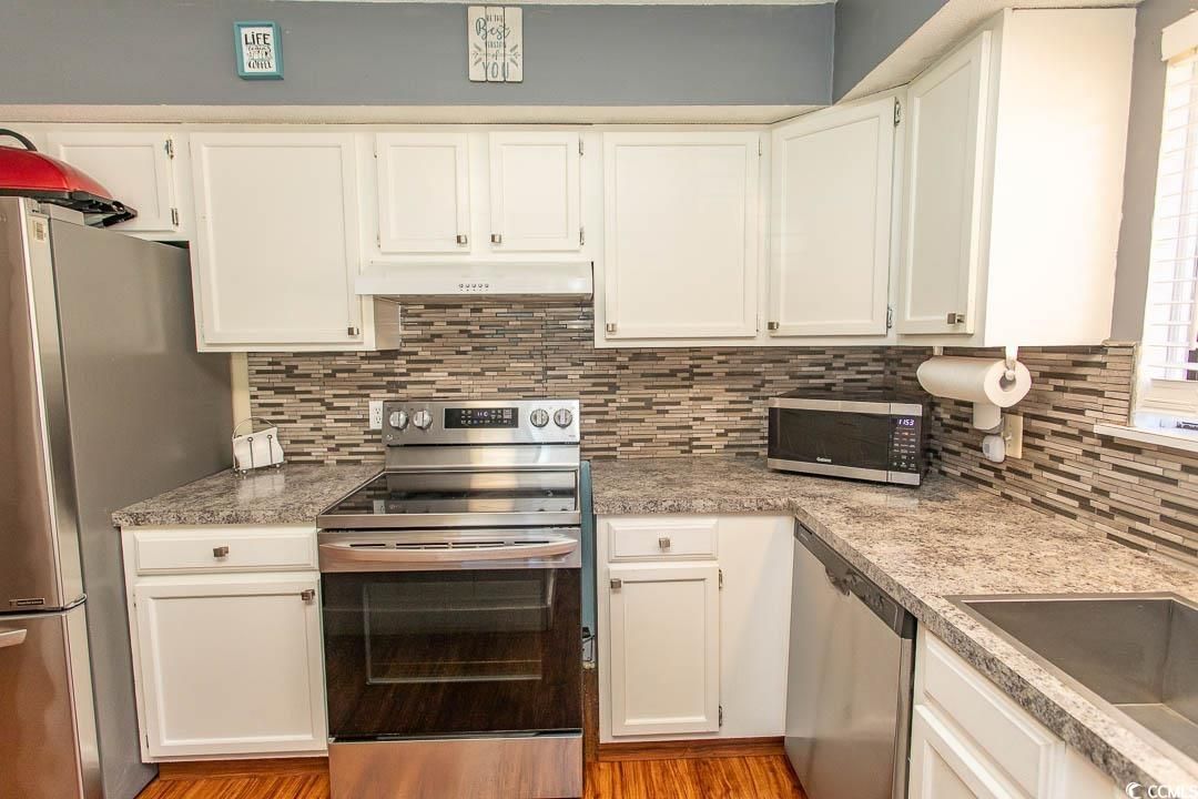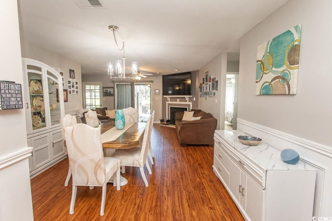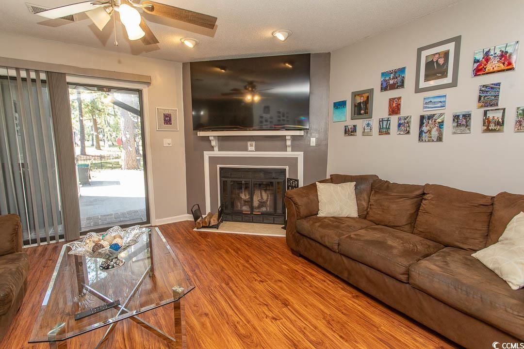 This comfy, cozy and conveniently located cottage-style ranch in sought-after Active 55+ Myrtle Trace is a perfect place to retire and enjoy life "at the beach". Just a few miles from the wonderful attractions, shopping and beaches of the Grand Strand, this inviting community is nestled next to Burning Ridge Golf Course with Aldi's, Walmart, restaurants and Wild Wing Golf Course also very close by. The home itself, has stunning views of the 10th fairway from the large back patio. Inside you will find an updated (2020), expanded kitchen with stainless steel appliances incl a combo range (convection, air fryer and reg bake), a center island and large pantry. The living room has a bonus area that could be turned into a small third bedroom. There are 2 FIREPLACES in the home. One located in the liv rm and one in the unique den or "man-cave" area off the expanded living room area. Separated by a pocket door, the den also has 2 sliders to the rear patio which lets the beautiful view of the golf course in. 2 additional generous bedrooms (the master has 2 walk in closets), 2 updated baths , a new roof (2021) and TONS of storage space inside and out makes this a great place to call home. The amenities at the clubhouse included in the low HOA fee feature an outdoor pool, bocce ball , basketball court, clubs and organized activities and gatherings.