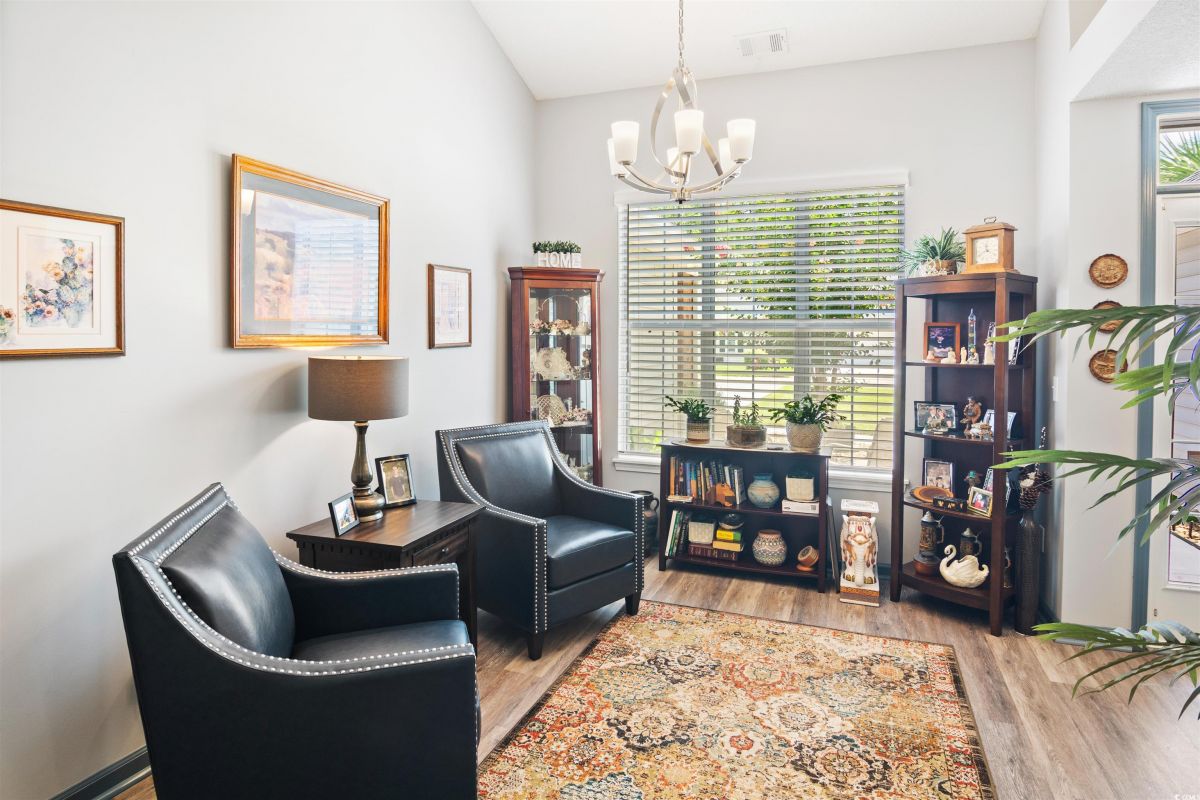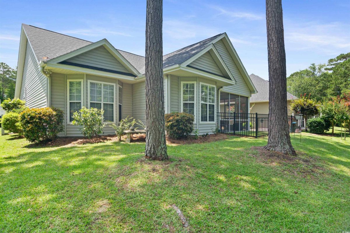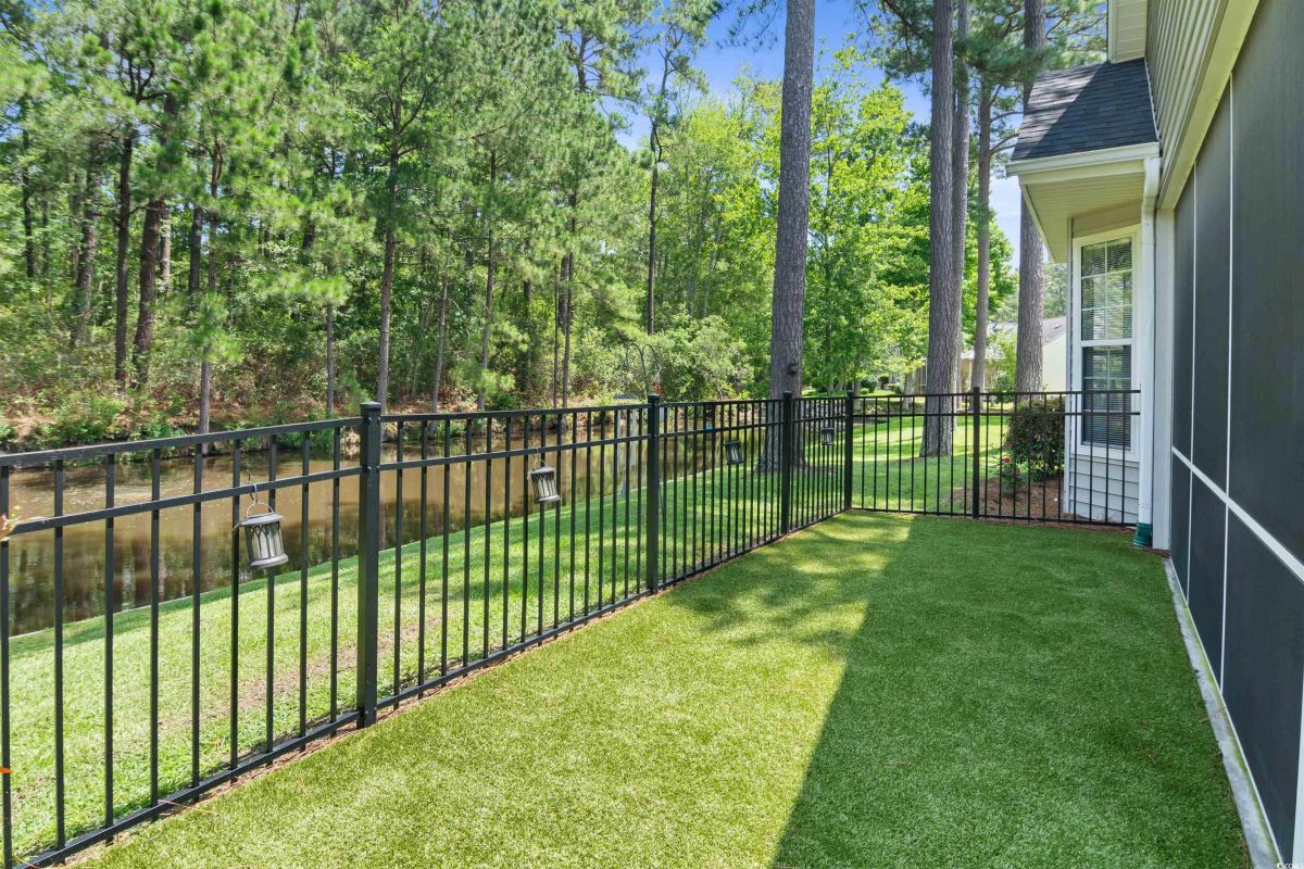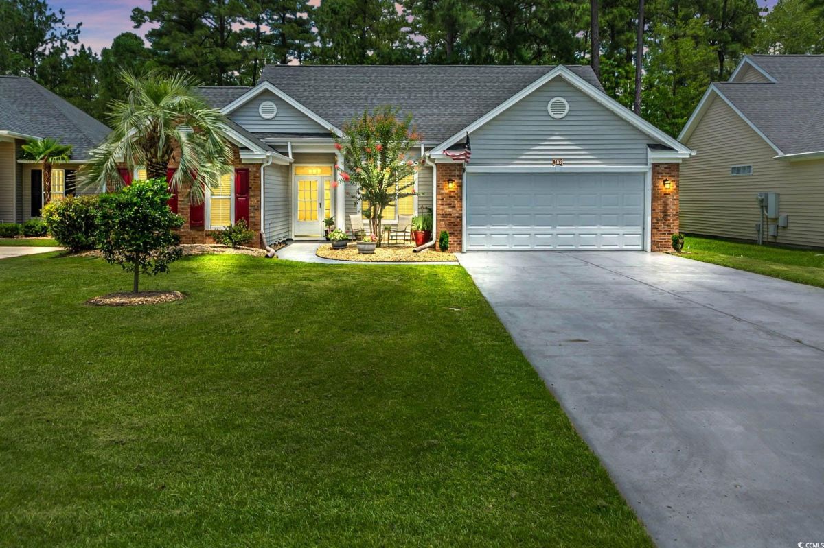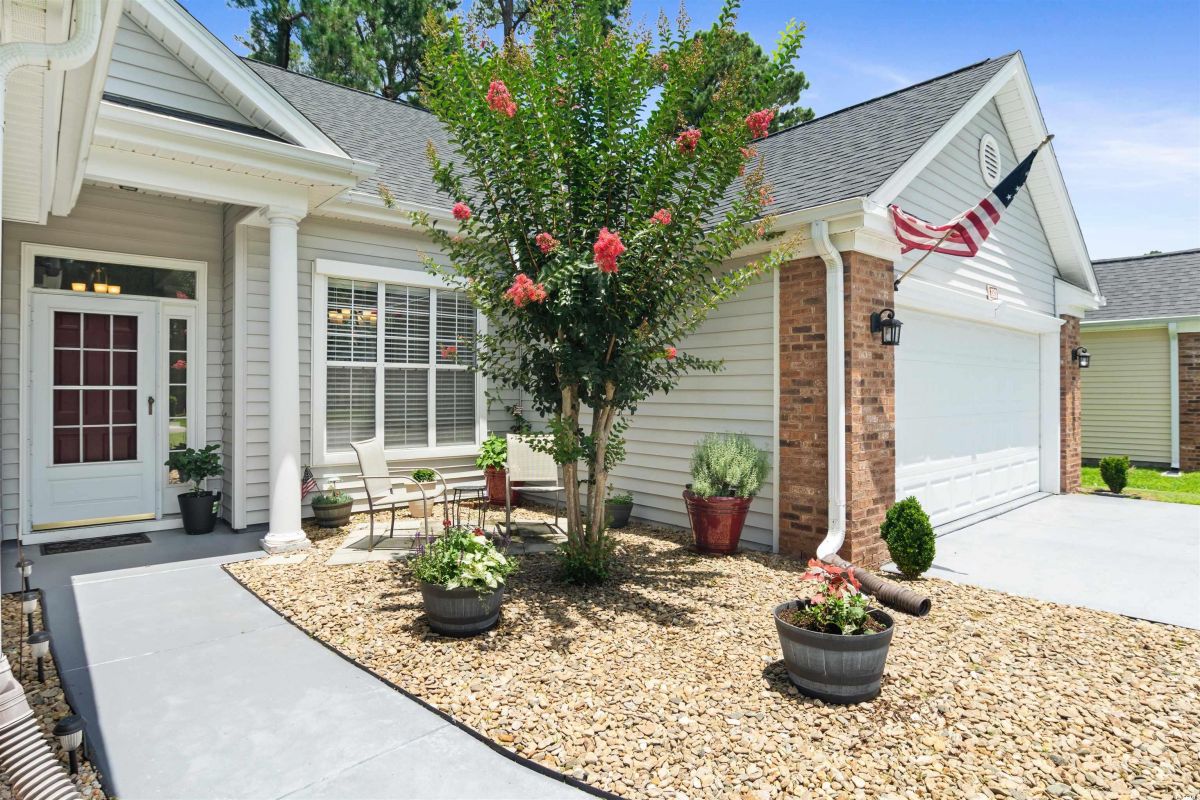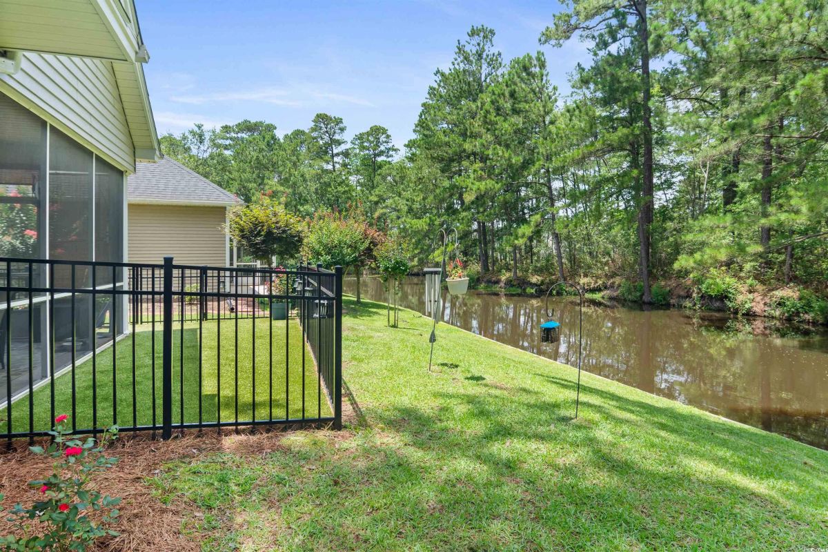 This recently updated and mostly furnished, three-bedroom, two-bathroom property offers exceptional value within Myrtle Trace, a distinguished 55+ retirement community built by Hall Development, Located adjacent to the Burning Ridge Golf Course, residents can enjoy a community center featuring a swimming pool, ball court, and recreation center, providing abundant opportunities for activity. Notably, Myrtle Trace has been recognized as one of America's top 20 retirement communities. Many homes within the community are situated on lakes or back up to either the Burning Ridge Golf Course or wooded areas. This particular home, located on Hummingbird Lake on a quiet, non-through street called Glenwood Drive, offers tranquil views where one can observe rabbits, fish, turtles, and even deer. The property boasts a coated concrete driveway, a meticulously manicured lawn, and healthy plant life throughout the landscaping. The current owners have enhanced the backyard by removing dead pine trees and preserving the lake and wooded views with a black wrought iron fence and low-maintenance "forever lawn" for pets. The backyard has a patio area with a gently used BBQ grill that the owners are generously leaving for the new buyers. This will be helpful for those days you want to enjoy entertaining yourself or new friends in the adjacent back porch with outdoor furniture staying for you. Enjoy the woodland creatures and bird life as you dine! The other options you have for dining include the granite counter bar area in the kitchen with bar stools that will remain, or the kitchen table that is placed by the bay window for an inside view of the incredible view that this property is privileged to have, and is also being provided by the sellers or should you choose to furnish the formal dining area you would have that as well. The kitchen was remodeled to be cutting edge in design and functional. Highlighting just a few of the features, a beautiful custom backsplash, farmers sink, soft pull drawers, brushed nickel handles instead of tiny knobs, and under cabinet lighting that is wired in with a dimmer switch on the wall make this kitchen a delight to cook and enjoy entertaining in! The owner's suite, privately situated down a hallway, features bay windows offering serene lake and wooded views, a walk-in closet, and new carpeting. The en suite bathroom is designed for convenience and functionality, offering a stand-up shower, a separate one-step-in tub, and a spacious vanity. The two guest rooms and a full guest bath that was updated with a new walk in shower, are thoughtfully located on the opposite side of the home, ensuring privacy for all, with the open-concept living room, formal dining room, and updated kitchen centrally positioned. For immediate comfort, most of the living room furnishings are included, allowing for immediate relaxation and enjoyment of the tranquil lake views. Additional upgrades include new carpeting, luxury vinyl plank flooring, leaf filters, insulated garage doors, new exterior garage lights, and a freshly painted garage. The spacious laundry room includes a wall-mounted hook rack and upper cabinets, with a full-sized washer and dryer included with the property. All blinds that were fitted and installed will also remain with this property! The list of items that convey are in agent documents. For more information on the community and the rules, activities and resources please don't hesitate to reach out or go to Myrtletracesc.org. This one won't last long, so act fast!