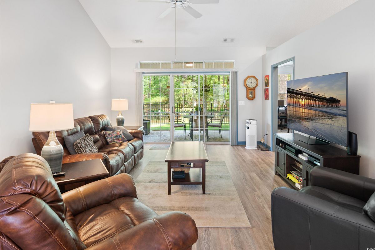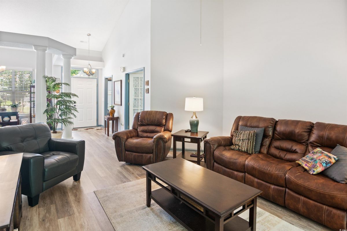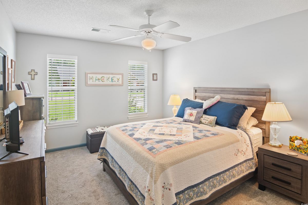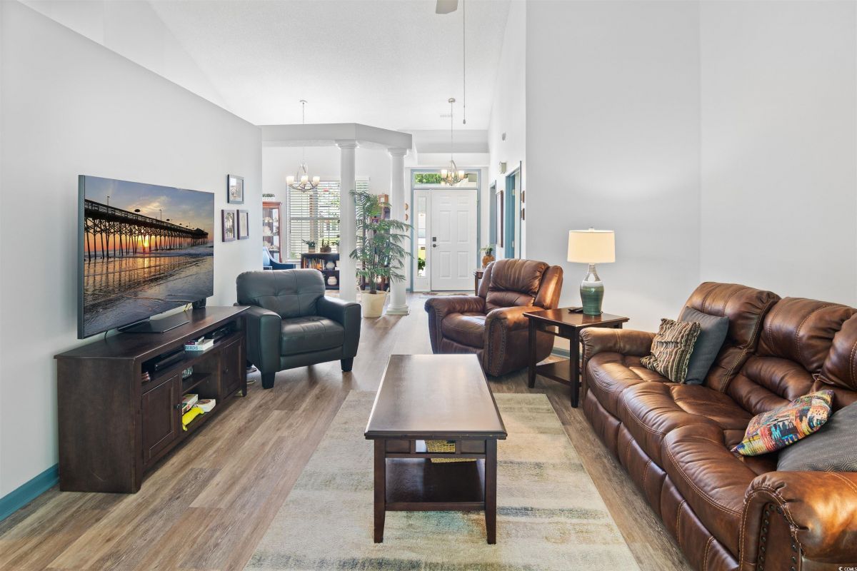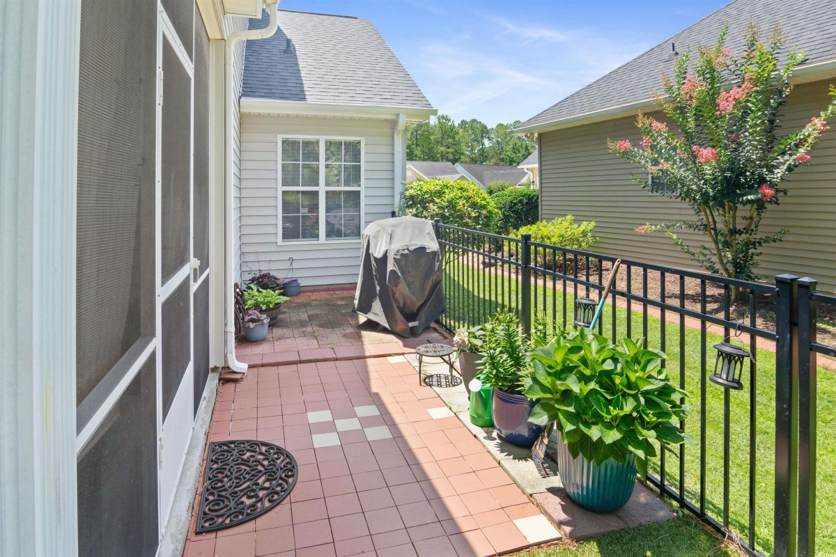 This recently updated and mostly furnished, three-bedroom, two-bathroom property offers exceptional value within Myrtle Trace, a distinguished 55+ retirement community built by Hall Development, Located adjacent to the Burning Ridge Golf Course, residents can enjoy a community center featuring a swimming pool, ball court, and recreation center, providing abundant opportunities for activity. Notably, Myrtle Trace has been recognized as one of America's top 20 retirement communities. Many homes within the community are situated on lakes or back up to either the Burning Ridge Golf Course or wooded areas. This particular home, located on Hummingbird Lake on a quiet, non-through street called Glenwood Drive, offers tranquil views where one can observe rabbits, fish, turtles, and even deer. The property boasts a coated concrete driveway, a meticulously manicured lawn, and healthy plant life throughout the landscaping. The current owners have enhanced the backyard by removing dead pine trees and preserving the lake and wooded views with a black wrought iron fence and low-maintenance "forever lawn" for pets. The backyard has a patio area with a gently used BBQ grill that the owners are generously leaving for the new buyers. This will be helpful for those days you want to enjoy entertaining yourself or new friends in the adjacent back porch with outdoor furniture staying for you. Enjoy the woodland creatures and bird life as you dine! The other options you have for dining include the granite counter bar area in the kitchen with bar stools that will remain, or the kitchen table that is placed by the bay window for an inside view of the incredible view that this property is privileged to have, and is also being provided by the sellers or should you choose to furnish the formal dining area you would have that as well. The kitchen was remodeled to be cutting edge in design and functional. Highlighting just a few of the features, a beautiful custom backsplash, farmers sink, soft pull drawers, brushed nickel handles instead of tiny knobs, and under cabinet lighting that is wired in with a dimmer switch on the wall make this kitchen a delight to cook and enjoy entertaining in! The owner's suite, privately situated down a hallway, features bay windows offering serene lake and wooded views, a walk-in closet, and new carpeting. The en suite bathroom is designed for convenience and functionality, offering a stand-up shower, a separate one-step-in tub, and a spacious vanity. The two guest rooms and a full guest bath that was updated with a new walk in shower, are thoughtfully located on the opposite side of the home, ensuring privacy for all, with the open-concept living room, formal dining room, and updated kitchen centrally positioned. For immediate comfort, most of the living room furnishings are included, allowing for immediate relaxation and enjoyment of the tranquil lake views. Additional upgrades include new carpeting, luxury vinyl plank flooring, leaf filters, insulated garage doors, new exterior garage lights, and a freshly painted garage. The spacious laundry room includes a wall-mounted hook rack and upper cabinets, with a full-sized washer and dryer included with the property. All blinds that were fitted and installed will also remain with this property! The list of items that convey are in agent documents. For more information on the community and the rules, activities and resources please don't hesitate to reach out or go to Myrtletracesc.org. This one won't last long, so act fast!