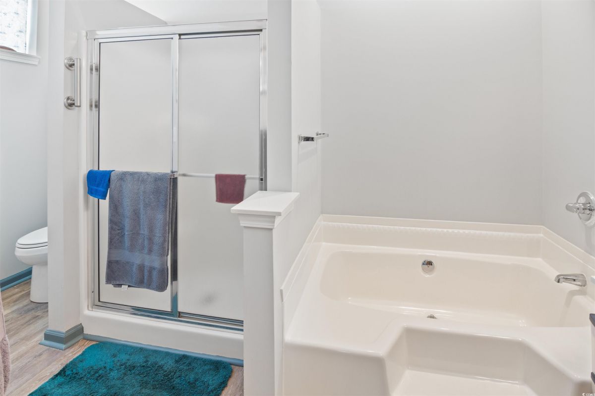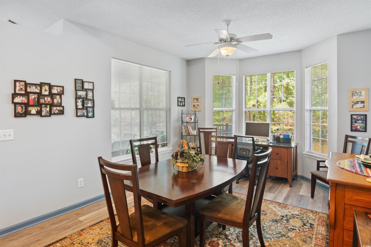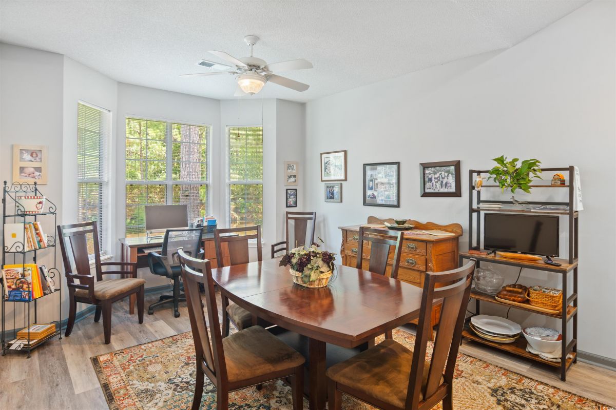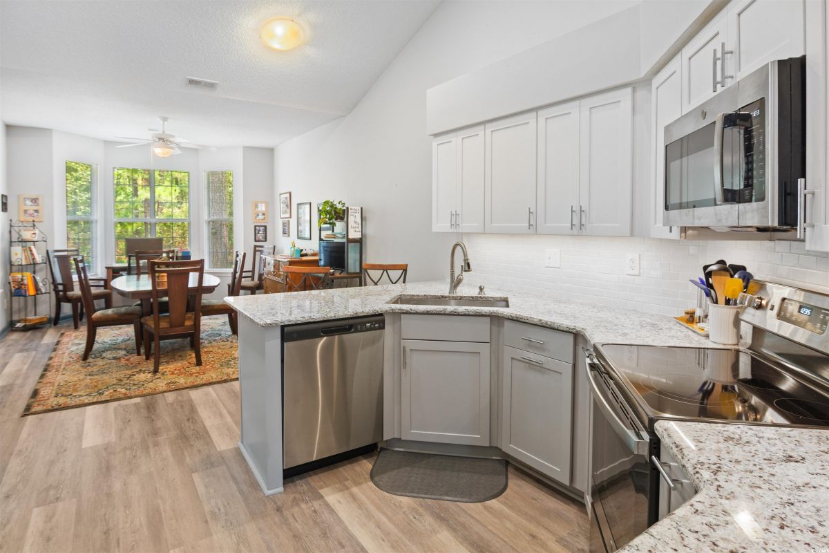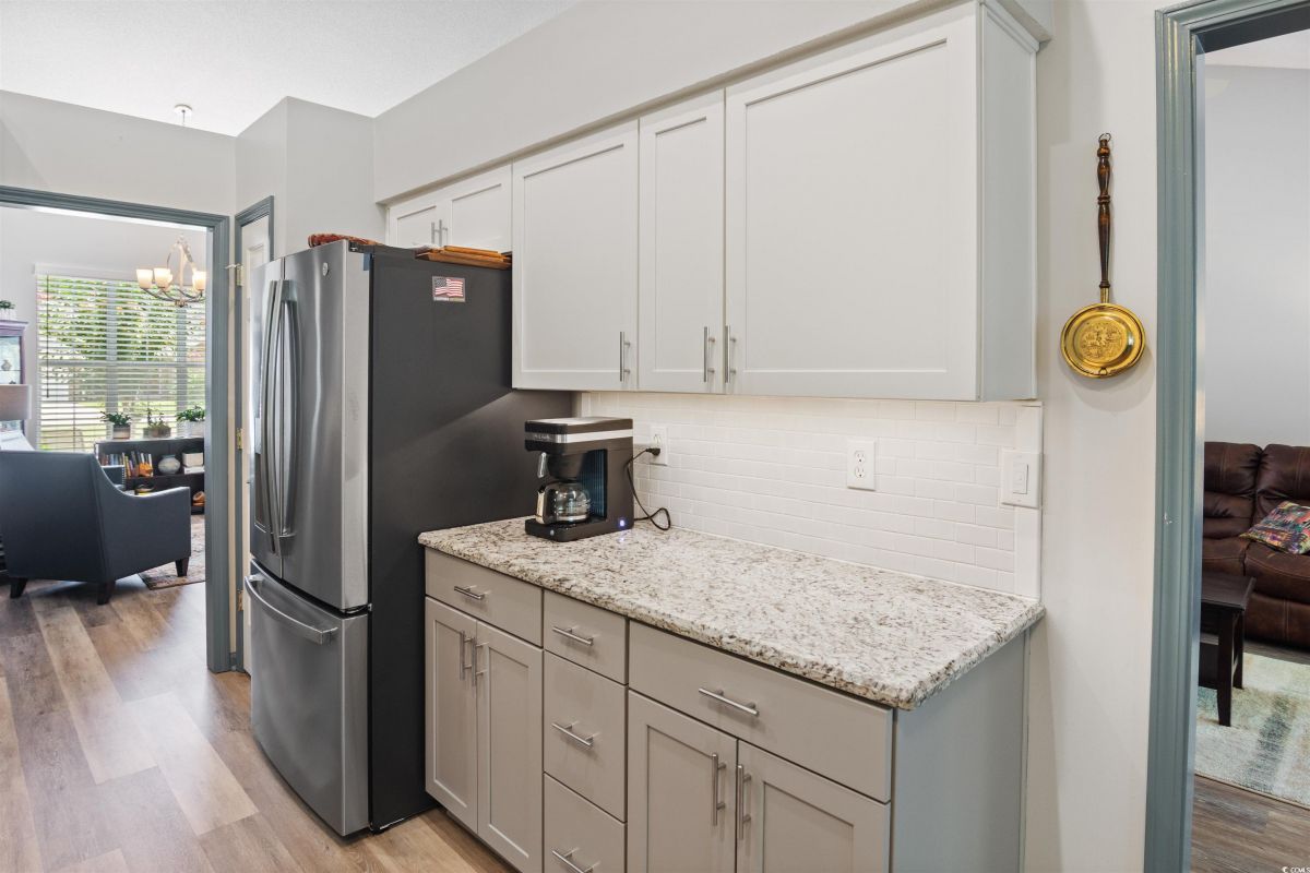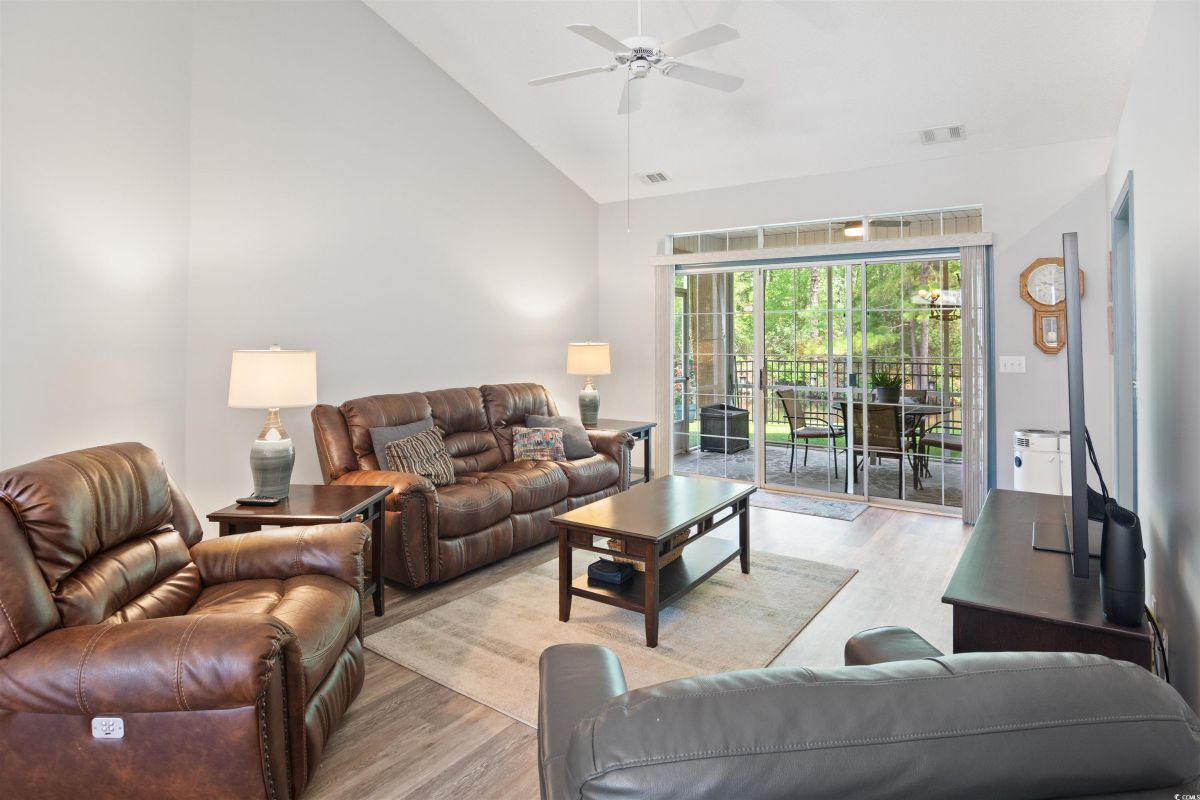 This recently updated and mostly furnished, three-bedroom, two-bathroom property offers exceptional value within Myrtle Trace, a distinguished 55+ retirement community built by Hall Development, Located adjacent to the Burning Ridge Golf Course, residents can enjoy a community center featuring a swimming pool, ball court, and recreation center, providing abundant opportunities for activity. Notably, Myrtle Trace has been recognized as one of America's top 20 retirement communities. Many homes within the community are situated on lakes or back up to either the Burning Ridge Golf Course or wooded areas. This particular home, located on Hummingbird Lake on a quiet, non-through street called Glenwood Drive, offers tranquil views where one can observe rabbits, fish, turtles, and even deer. The property boasts a coated concrete driveway, a meticulously manicured lawn, and healthy plant life throughout the landscaping. The current owners have enhanced the backyard by removing dead pine trees and preserving the lake and wooded views with a black wrought iron fence and low-maintenance "forever lawn" for pets. The backyard has a patio area with a gently used BBQ grill that the owners are generously leaving for the new buyers. This will be helpful for those days you want to enjoy entertaining yourself or new friends in the adjacent back porch with outdoor furniture staying for you. Enjoy the woodland creatures and bird life as you dine! The other options you have for dining include the granite counter bar area in the kitchen with bar stools that will remain, or the kitchen table that is placed by the bay window for an inside view of the incredible view that this property is privileged to have, and is also being provided by the sellers or should you choose to furnish the formal dining area you would have that as well. The kitchen was remodeled to be cutting edge in design and functional. Highlighting just a few of the features, a beautiful custom backsplash, farmers sink, soft pull drawers, brushed nickel handles instead of tiny knobs, and under cabinet lighting that is wired in with a dimmer switch on the wall make this kitchen a delight to cook and enjoy entertaining in! The owner's suite, privately situated down a hallway, features bay windows offering serene lake and wooded views, a walk-in closet, and new carpeting. The en suite bathroom is designed for convenience and functionality, offering a stand-up shower, a separate one-step-in tub, and a spacious vanity. The two guest rooms and a full guest bath that was updated with a new walk in shower, are thoughtfully located on the opposite side of the home, ensuring privacy for all, with the open-concept living room, formal dining room, and updated kitchen centrally positioned. For immediate comfort, most of the living room furnishings are included, allowing for immediate relaxation and enjoyment of the tranquil lake views. Additional upgrades include new carpeting, luxury vinyl plank flooring, leaf filters, insulated garage doors, new exterior garage lights, and a freshly painted garage. The spacious laundry room includes a wall-mounted hook rack and upper cabinets, with a full-sized washer and dryer included with the property. All blinds that were fitted and installed will also remain with this property! The list of items that convey are in agent documents. For more information on the community and the rules, activities and resources please don't hesitate to reach out or go to Myrtletracesc.org. This one won't last long, so act fast!