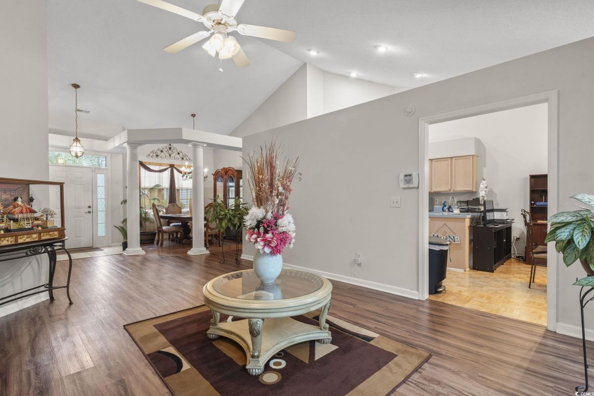 Welcome to Myrtle Trace – The Highly Desirable 55+ Community! Don’t miss this bright and spacious home located in Phase VIII of Myrtle Trace, designed for comfort, convenience, and easy living. This well-maintained residence features a large kitchen with ample cabinets, generous counter space, a pantry, and a sunny breakfast nook perfect for morning coffee. The open-concept living room boasts vaulted ceilings and an oversized sliding door that leads to a private, wooded backyard—ideal for relaxing, BBQing, or simply enjoying the birds and nature. Entertain effortlessly with a formal dining room just steps from the kitchen. The split-bedroom floor plan offers privacy and functionality, with the spacious primary suite featuring an ensuite bath and walk-in closet located on one side of the home, and two additional bedrooms and a second full bath on the other. The third bedroom is currently used as a home office and features elegant French doors. Additional highlights include: Two-car garage with utility sink and pull-down attic stairs for added storage Laundry room conveniently located off the hallway with direct access to the garage Large rear patio backing to woods for added privacy Myrtle Trace offers an active lifestyle with amenities such as a clubhouse, pool, library, bocce, pickleball, shuffleboard, cards, clubs, bingo nights, and more—you can stay as active as you like or simply enjoy the peace and quiet of this friendly, well-kept community. Located close to shopping, dining, golf, healthcare, and just a short drive to the beach. ?? Schedule your showing today—this home won’t last long!