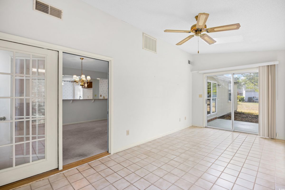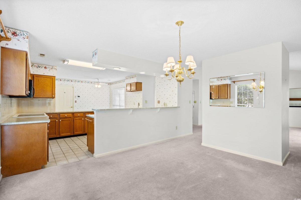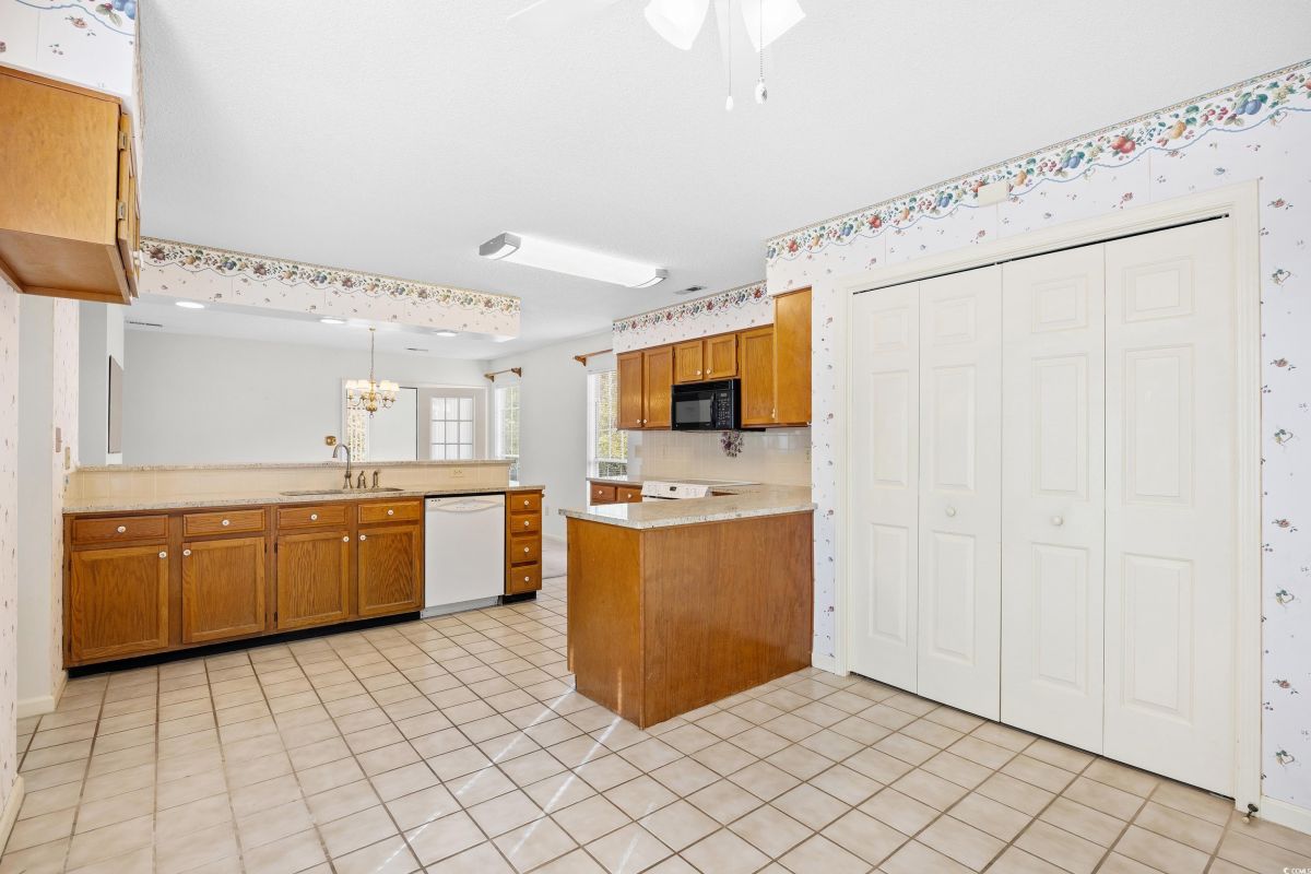 Location, location, location! Woodlake Village is a 55+ community in Murrells Inlet, close to some of the most beautiful beaches in South Carolina. 1001 Cardinal Court, located on a great Cul-de-sac lot, has over 1,900 square feet of living space, which includes a heated and air-conditioned Sunroom. The home features a 3-bedroom, 2-bathroom floor plan, waiting for you to make it your own by adding your personal touches. This popular floor plan has a living room with a wood-burning fireplace that faces the backyard and patio. The kitchen is open to the dining room, separated by a breakfast bar. Enjoy your morning coffee in the cozy breakfast nook. Here, you also have access to the laundry closet and garage. The 19 x 10 sunroom has tile floors and is full of natural light from all the windows and sliding doors. The spacious primary bedroom offers two separate bathroom areas and a 5 x 5 walk-in closet. Down the hall are the two additional bedrooms, with closets that provide plenty of space for your guests, a second bathroom, and a linen closet. Some newer features include a roof in November 2024, a security system, granite countertops, a termite bait system, and a recently power-washed exterior. Included are kitchen appliances, a washer, a dryer, a gutter system, an irrigation system, and hurricane window coverings. All the residents in Woodlake Village have access to a community pool, clubhouse, pickleball courts, and social activities. The clubhouse and amenities are a short distance away, and the community is golf cart and pet friendly! Come and see what Woodlake Village is all about, and make 1001 Carinal Court your new home at the beach!