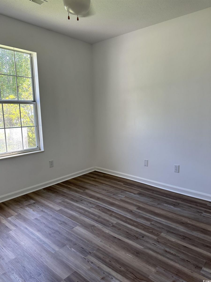 Charming Duplex in 55+ Community Where You Own the Land! This 2-bedroom, 2-bath, ½ duplex is located on a quiet cul-de-sac in the desirable 55+ community of Woodlake Village. One of the standout features of this property is that you own the land—no land lease required. Step inside and you'll appreciate the spacious layout and abundance of natural light. The large family room boasts a vaulted ceiling, ceiling fan, three generously sized windows, and sliding glass doors that open to a private backyard. The kitchen features cabinetry, range, dishwasher, microwave, refrigerator, and a cozy breakfast nook with bay window. A laundry room includes shelving, washer and dryer that convey, and provides direct access to the side yard. The split-bedroom floor plan offers privacy, with the primary suite on one side of the home and the guest bedroom on the other. The primary bedroom includes a walk-in closet, ceiling fan, and three windows that let in plenty of light. The attached primary bathroom has a tub/shower combination. French doors lead to the guest bedroom, which has a ceiling fan and closet, and is conveniently located near the guest bathroom with tub/shower combo. Step outside from the family room onto a spacious patio overlooking a wooded backyard—ideal for morning coffee, grilling, or entertaining. An exterior storage closet offers space for beach gear, gardening tools, or luggage. The roof was replaced in November 2020 and the water heater was installed in January 2016. This home is perfect as a full-time residence, vacation getaway, or investment opportunity. Woodlake Village offers low HOA fees and great amenities including a clubhouse, pool, pickleball court, shuffleboard, library, and a variety of community activities. Located just 2 to 3 miles from the beach and minutes from shopping, restaurants, golf, healthcare, and the Murrells Inlet Marshwalk. One resident must be at least 55 years of age. Measurements and square footage are approximate and not guaranteed. Buyer and buyer’s agent are responsible for verification.