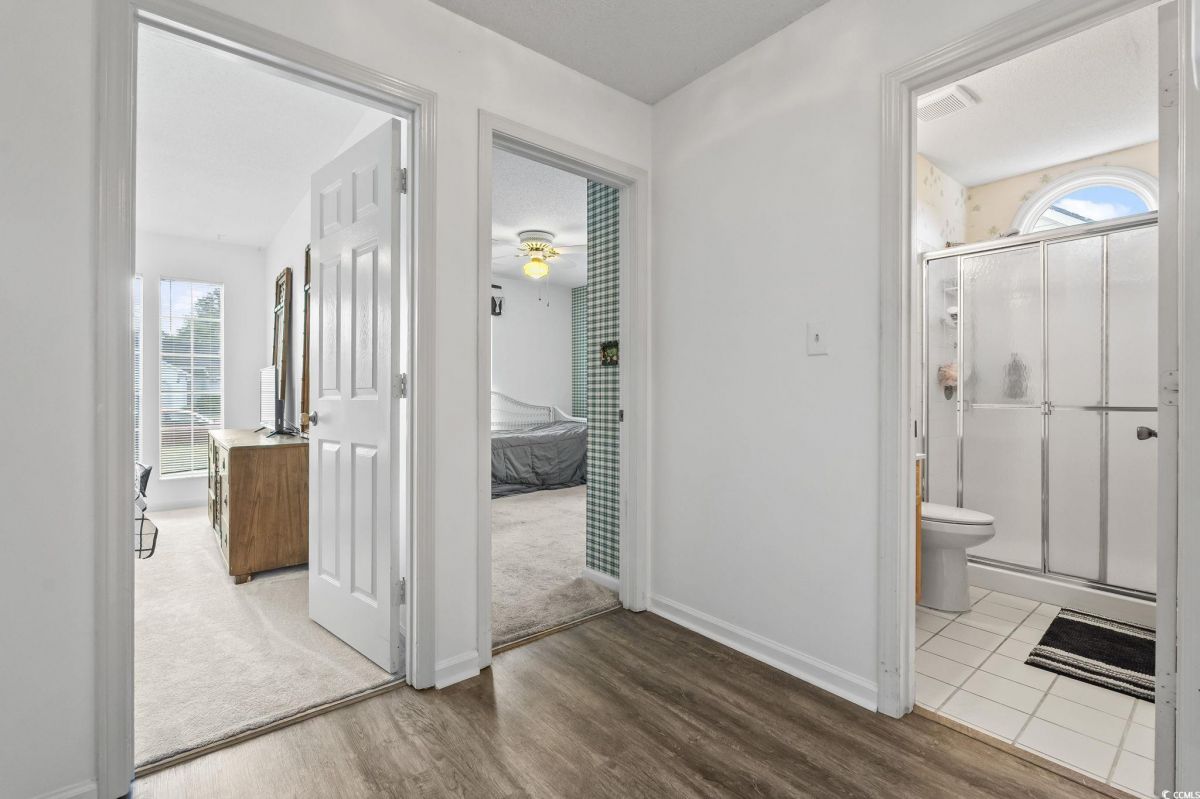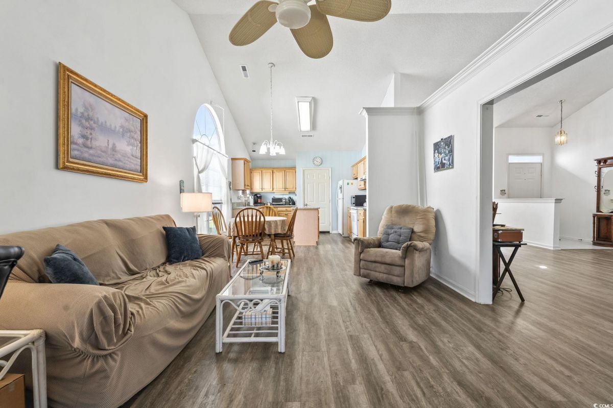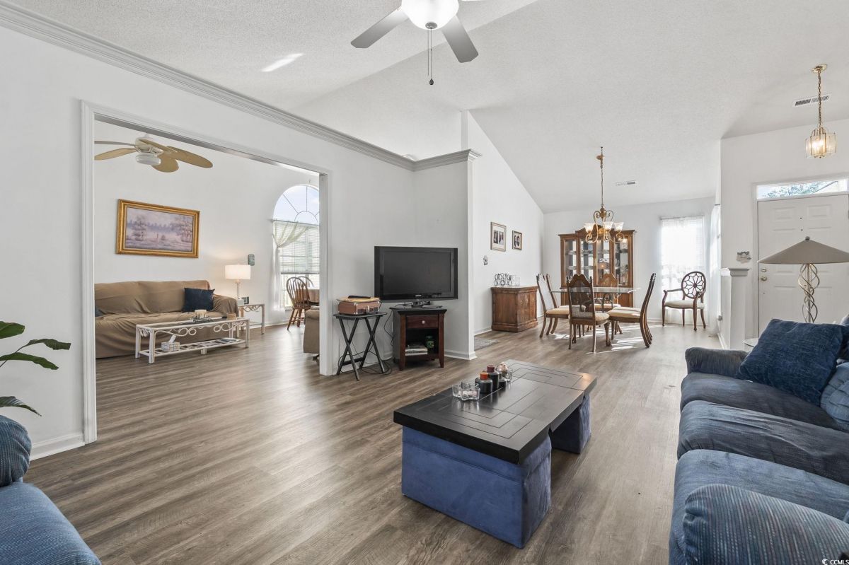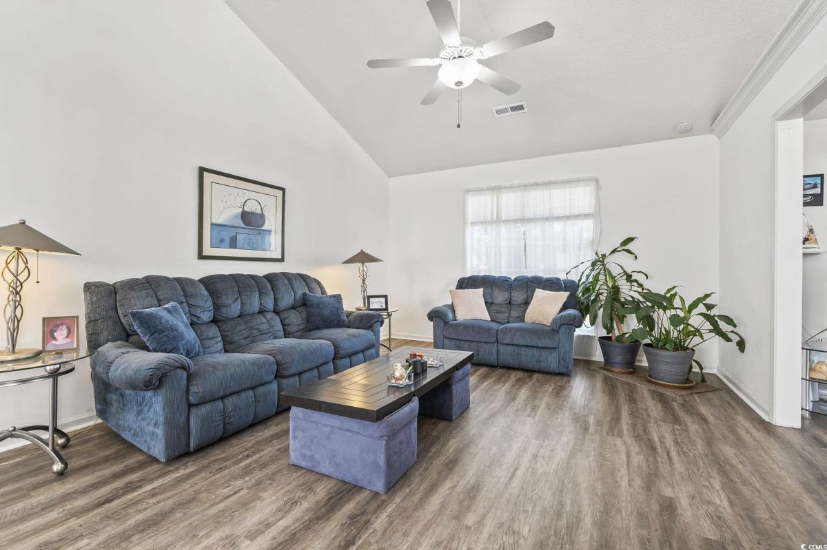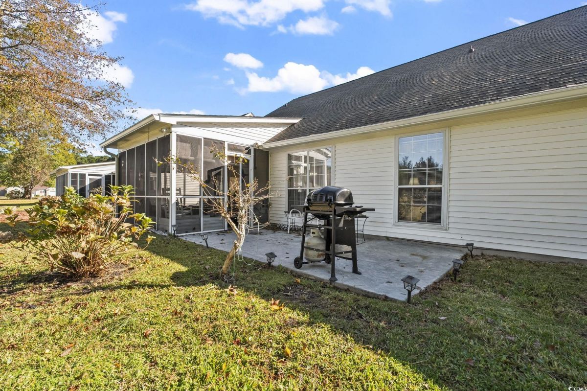 As you step inside, you'll immediately notice how open and comfortable this home feels. The living area has great natural light and a smooth flow into the dining space and kitchen - perfect for everyday living or entertaining. The kitchen really is the heart of the home, featuring granite countertops, plenty of cabinet space, and a center island that gives you extra room for prep or serving. It's easy to imagine mornings here with coffee at the breakfast table or evenings cooking. The primary suite offers a quiet retreat with a large walk-in closet and a spacious bathroom complete with dual vanities, a soaking tub, and a separate shower. Down the hall, you'll find two additional bedrooms that can easily serve as guest rooms, a home office, or hobby spaces - flexible for whatever your lifestyle needs. One of the best features is the screened porch off the back - it's the perfect spot to relax, enjoy the fresh air, and take in the private backyard setting. There's also a two-car garage and a dedicated laundry area that adds to the home's functionality. This home sits in the sought-after 55+ community of Woodlake Village, where you'll enjoy low HOA fees along with access to the clubhouse, pool, tennis courts, and plenty of social activities. It's easy to see why this neighborhood is so popular - it's peaceful, well-maintained, and just minutes from the Murrells Inlet Marshwalk, beautiful golf courses, local shops, and the beach. It's the kind of place where every day feels like you're exactly where you're meant to be. Measurements are not guaranteed. Buyer is responsible for verifying.