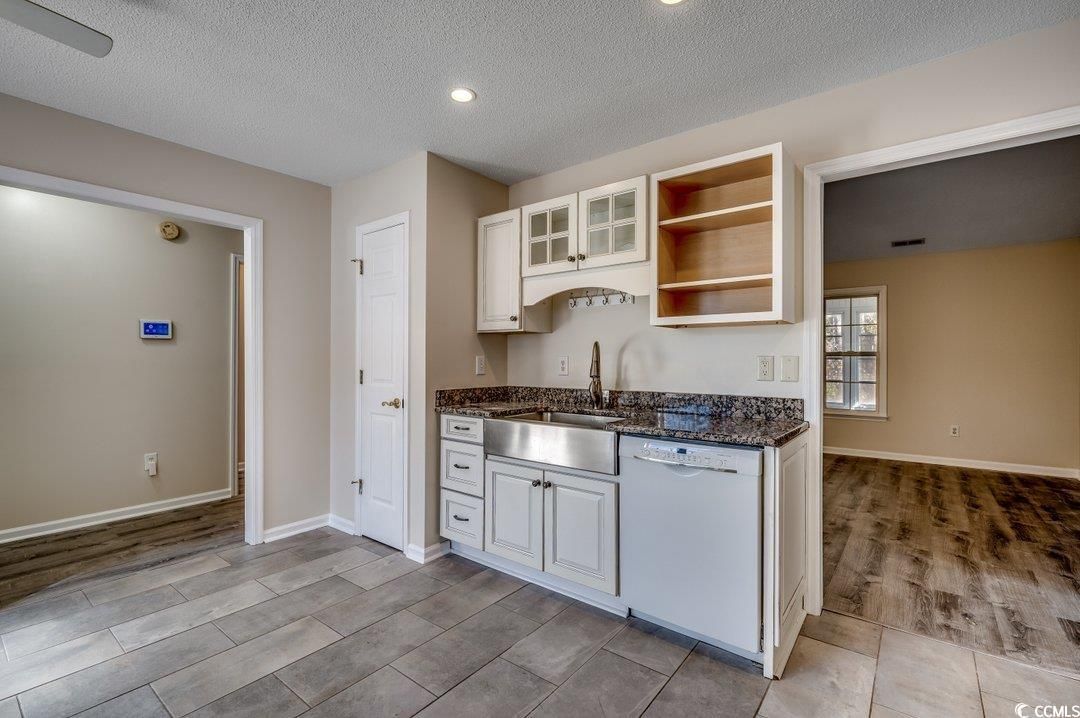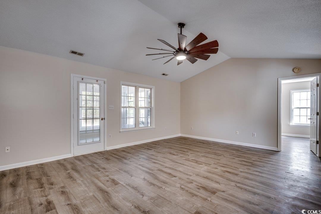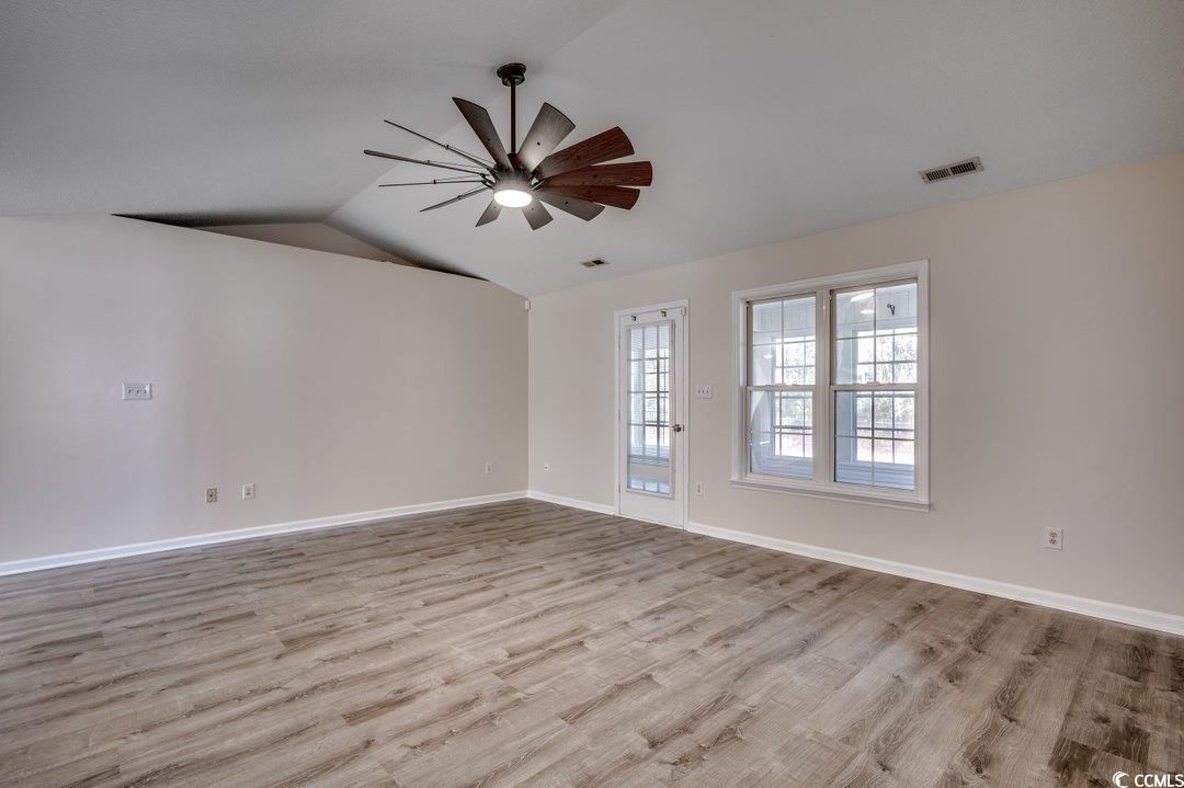 Adorable, freshly painted, one-level home located less than 3 miles from the beach in Woodlake Village, a highly sought-after 55+ community. LVP flooring flows from the front door into the great room with vaulted ceilings and all 3 bedrooms. The kitchen comes equipped with granite countertops, farmhouse undermount sink, ceramic tile and a breakfast nook. And you will love the Carolina Room in the back of the home granting access to the fenced-in backyard. Woodlake Village is a true 55+ community with a clubhouse, pool, tennis, pickleball, shuffleboard and library, and it's a short drive to the Murrells Inlet Marshwalk & the beach. Call your agent and schedule a showing today!
