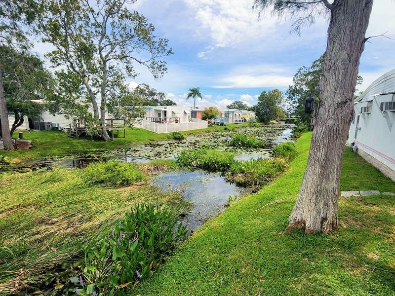 This two bedroom, two bath home awaits your own designer touches to make it truly yours. Abundant light bathes the home’s interior from the wonderful windows – all of which have blinds for privacy. The front of the home offers a very spacious air-conditioned Florida room, with separate entrance. It is a perfect space for family gatherings, separate office or a private area to relax with a good book or friends. The home has new vinyl flooring – the living room with two remote controlled ceiling fans. Two bathrooms offer new vanities, sinks, hardware and both offer low-profile showers. The kitchen has all the appliances you need and there is a new garbage disposal and generous pantry. There is also a new thirty-gallon water heater, and a washer/dryer combo inside the home. Central air maintains a year-round comfortable interior. There is also ample room for parking. The best part is the beautiful raised rear deck, with seating overlooking the canal with wildlife and beautiful flora and greenery. This move-in ready home offers one of the best views in the park. This home is just a five-minute stroll to Old Tampa Bay! It is conveniently located just minutes from world famous Clearwater Beach, with several high-end shopping malls, restaurants, major hospitals and two international airports. This is in a 55+ and over aged retirement community with many features such as a clubhouse with a heated pool and hot tub, as well as a recreation center, library, card room, billiard tables, shuffleboard, horseshoes, pickleball and bocce courts. There are two fenced dog parks (one for small dogs and one for large dogs). Currently we are installing a gazebo, and a fitness center! All of this on Old Tampa Bay! Retire in Paradise at our 55+ Manufactured Home Community in sunny Clearwater, Florida. Life is better by the Bay!