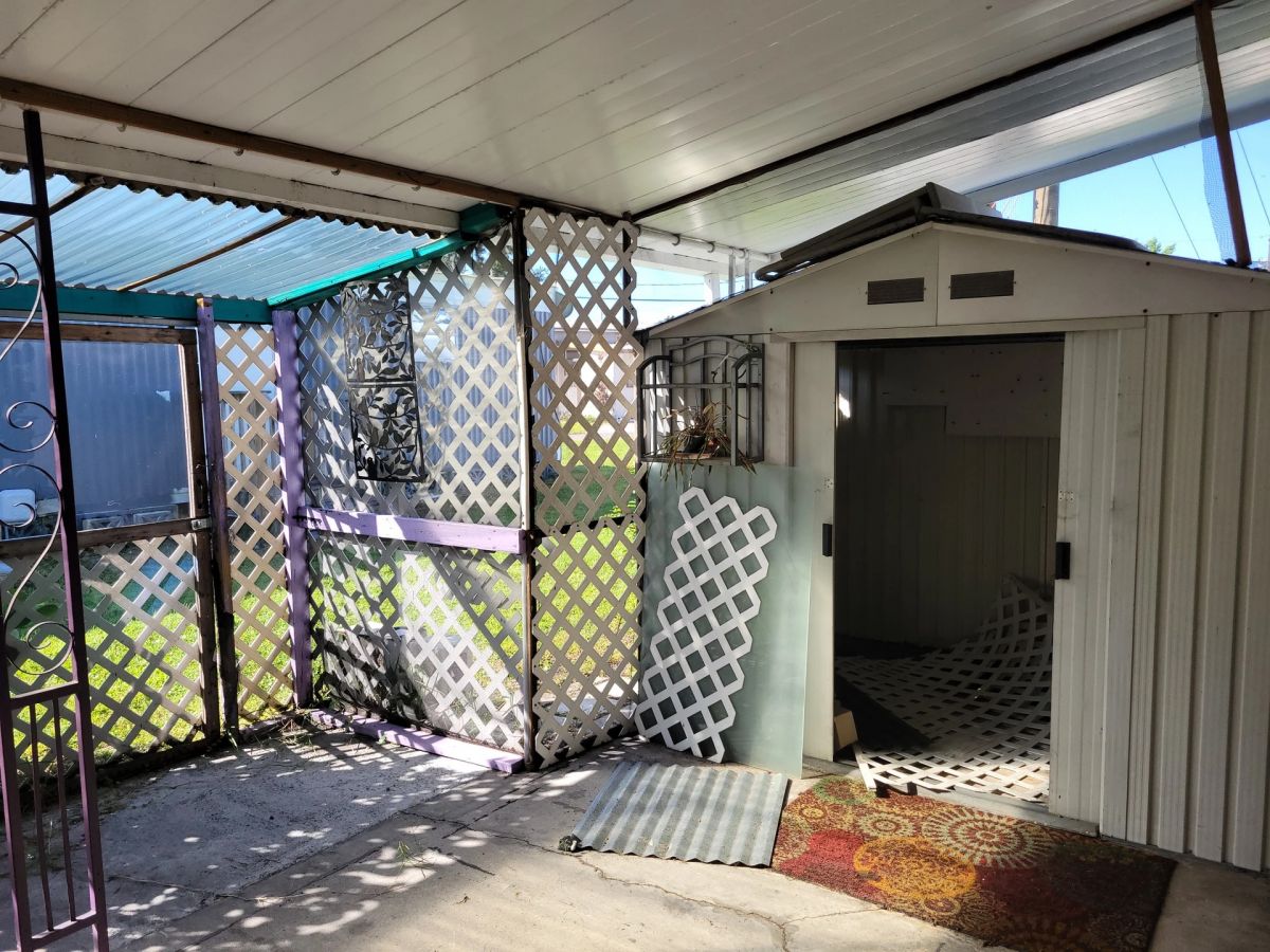 Welcome to your cozy retreat! Located in a 55+ community, this delightful 1-bedroom, 1-bath mobile home offers a peaceful lifestyle with plenty of potential. Nestled on a quiet lot, the property features a garden perfect for relaxing or cultivating your green thumb. A spacious shed provides ample storage for tools, hobbies, or even a small workshop. This home does not currently feature washer and dryer hookups, but the layout and infrastructure allow for easy installation. A dedicated space is accessible and ready for conversion, offering future owners the flexibility to add laundry appliances with minimal effort. While the home is move-in ready, it needs a carport, giving you the opportunity to customize and add value. Whether you're downsizing, investing, or seeking a serene escape, this home is a hidden gem waiting for your personal touch.