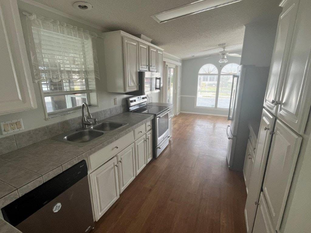 OUTSTANDING VALUE 1998 Homes of Merit Home with 2 Bedroom, 2 Bath with Den. Home sits on a corner lot with double side by side Carport. Brand New Rood in 2025, New A/C unit, Granite Kitchen Countertops with Stainless Steel Appliances. Large Lanai facing to the northeast. Tile and Laminate Wood Floors in Living area and Carpet in Bedrooms. Irrigation system for lawn. Park Owned Home. The Sun Key Village Ownership group contributes a generous yearly amount to the community's Social Fund to promote an active lifestyle and social events. Call today for your showing!!